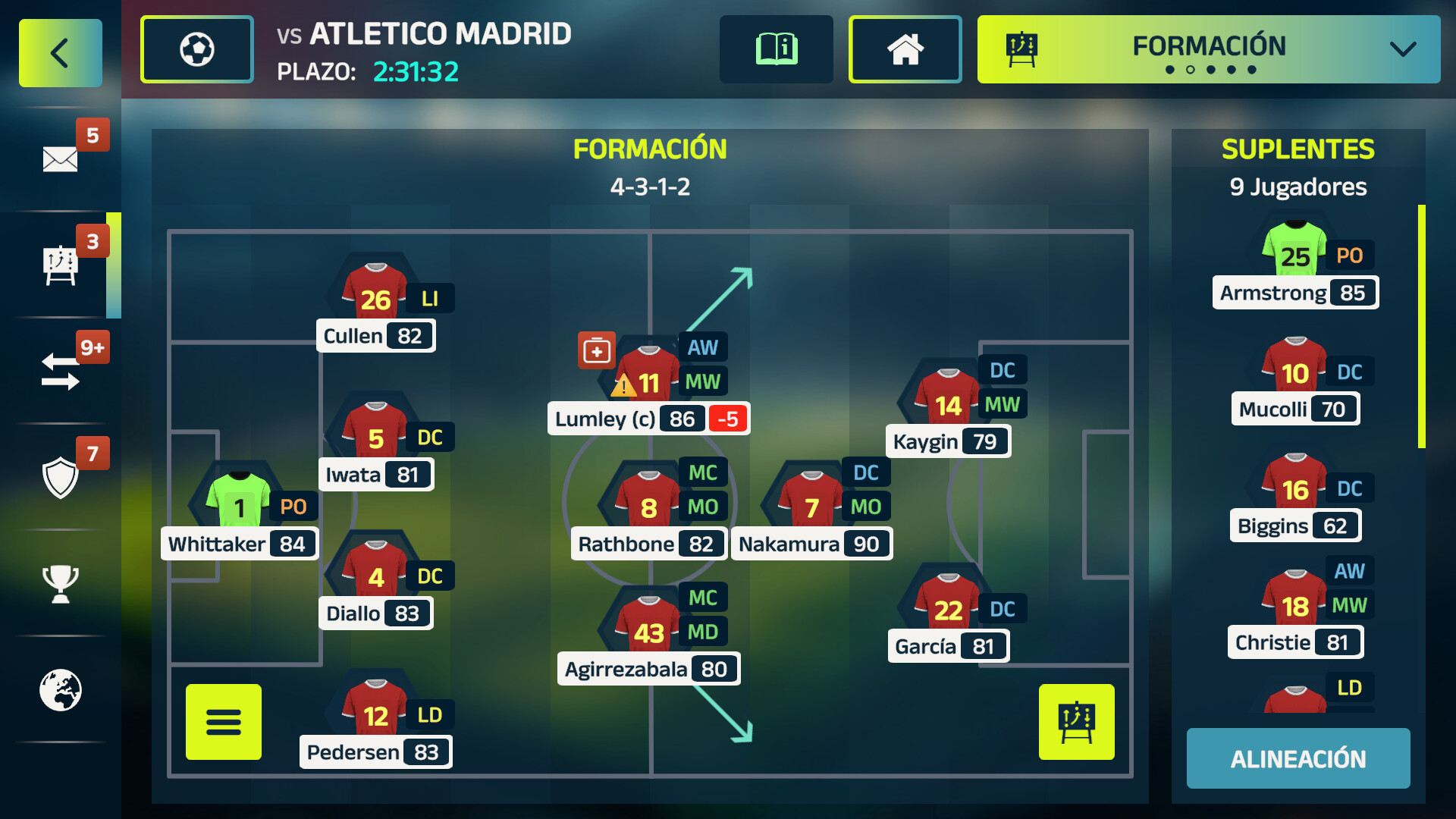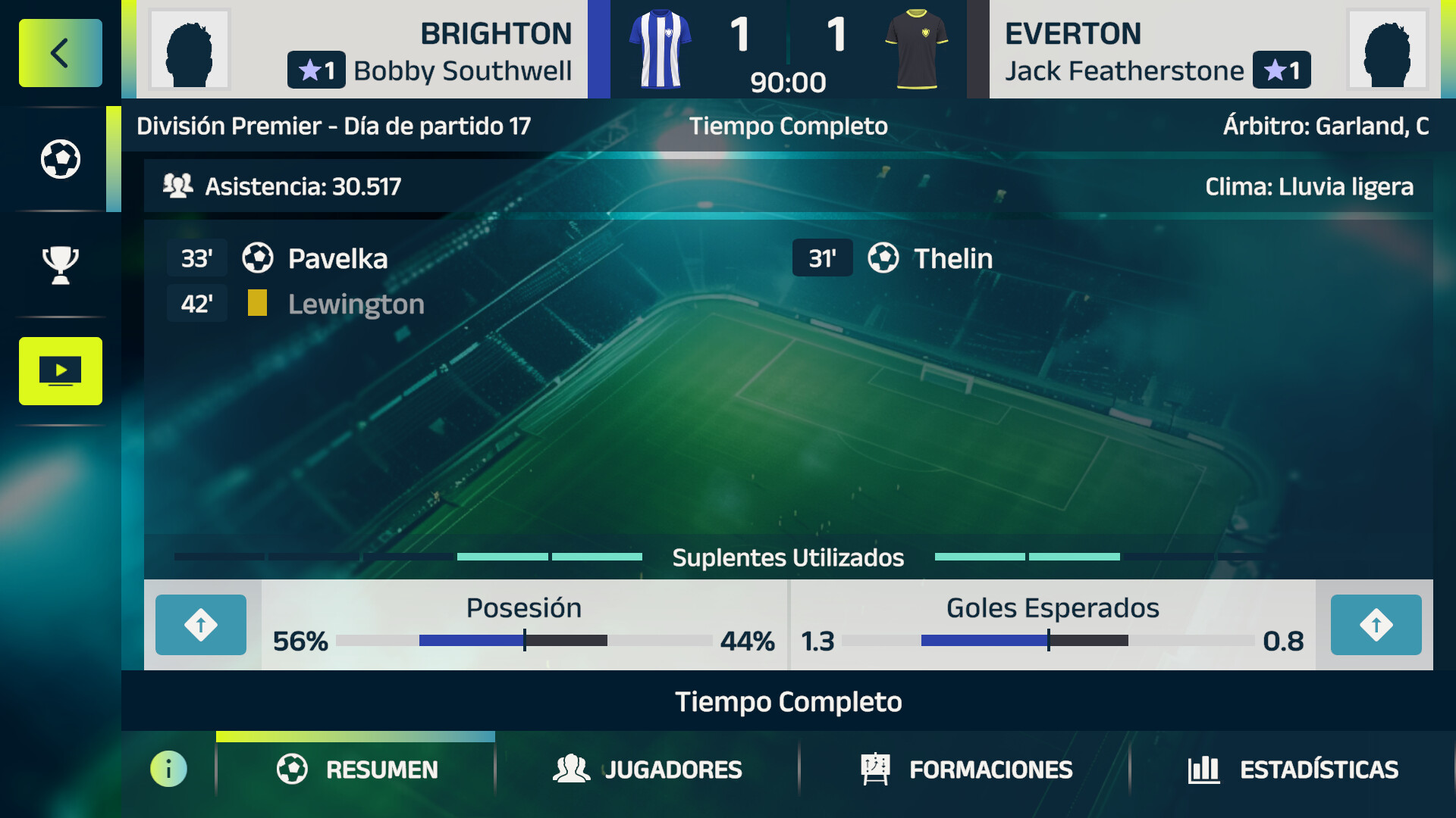 Los partidos se desarrollan en detalle con estadísticas en vivo, zonas de posesión y análisis tácticos. Reacciona en tiempo real a lesiones, tarjetas rojas y debilidades en la configuración de tu oponente para ganar la ventaja.