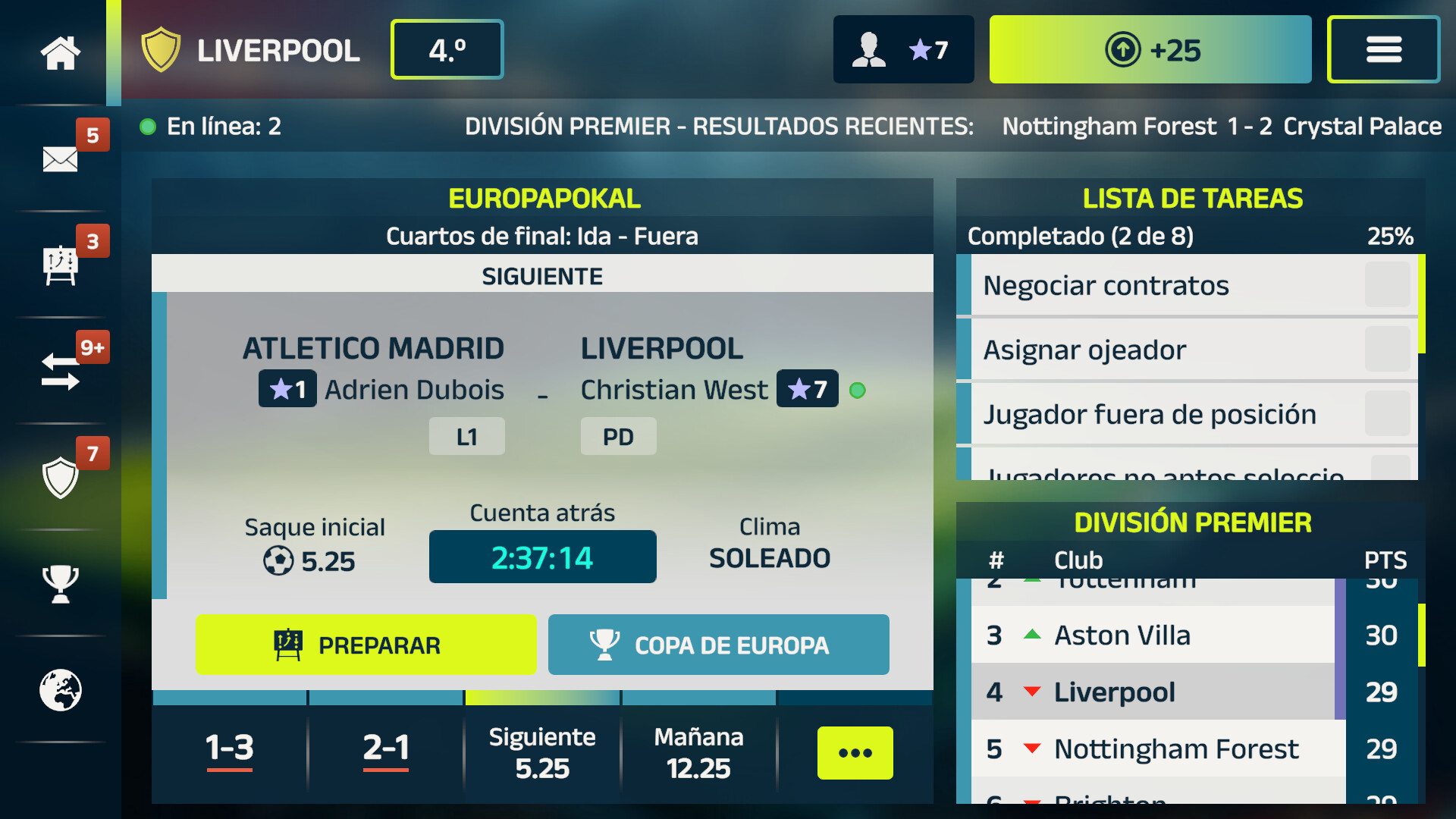 El silbato suena a diario: un partido de liga para probar tus tácticas, y partidos de copa esperando a aquellos que ganen el derecho a competir.