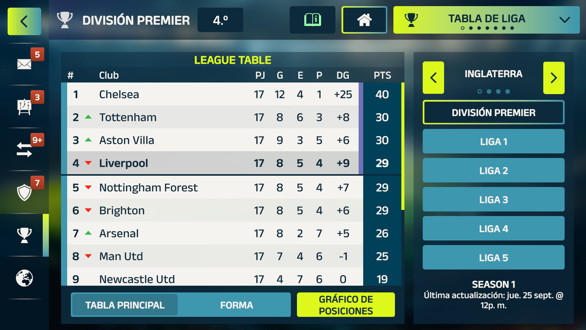 Tu reputación crece con cada resultado. Escala posiciones, gana reconocimiento global y desbloquea oportunidades para dirigir los clubes más grandes del mundo.