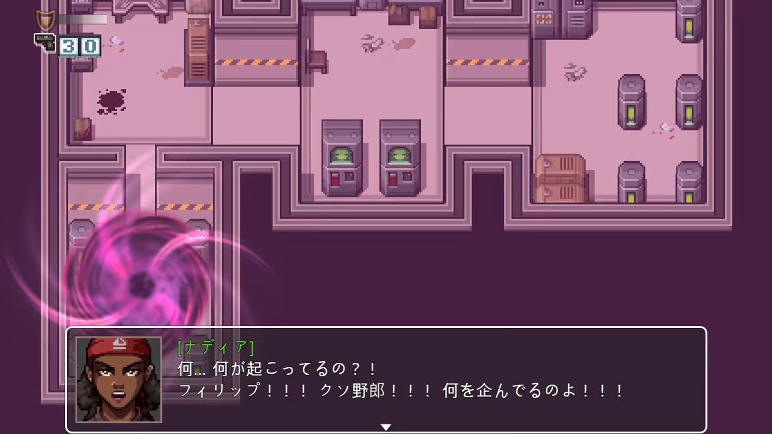 Nadia's Revenge は、2Dトップダウン型のピクセルアートシューティングゲームです。