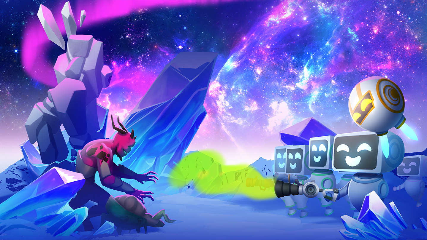Armed with the Multi-Beam-Tool and a new-found ability to duplicate himself, Z3-R0 must rely on copies of his own form to wield weapons, fight endless swarms, and cleanse unstable multiverse anomalies. While duplications take the fight to the enemy, Z3-R0’s job is to keep them alive, heal broken realities, and gather the resources needed to survive.