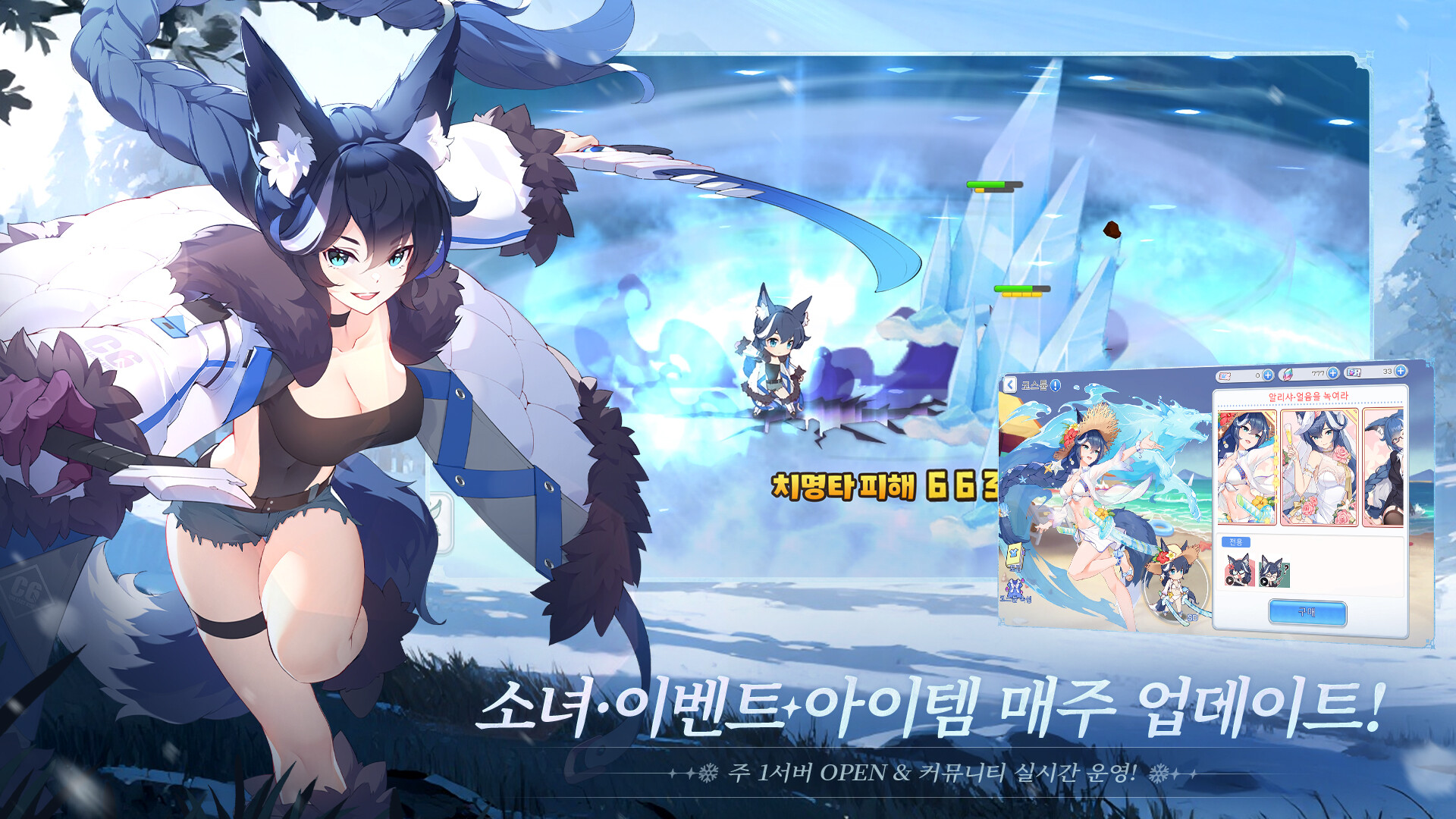 오토 전투, 원클릭 스킵 기능으로 노력 대비 높은 효율의 플레이가 가능합니다! 무과금으로도 모든 콘텐츠를 즐길 수 있는 진짜 힐링형 RPG! 뽑기 확률이 높아 30일 이내 SSR 소녀 10명 무조건 획득, 푸짐한 접속 보상, 주간 쿠폰, 신서버 전용 이벤트로 레벨업 더 빠르게! 게임 밸런스가 잘 잡혀 있어 전략만 잘 세워도 고과금 유저를 이길 수 있습니다!