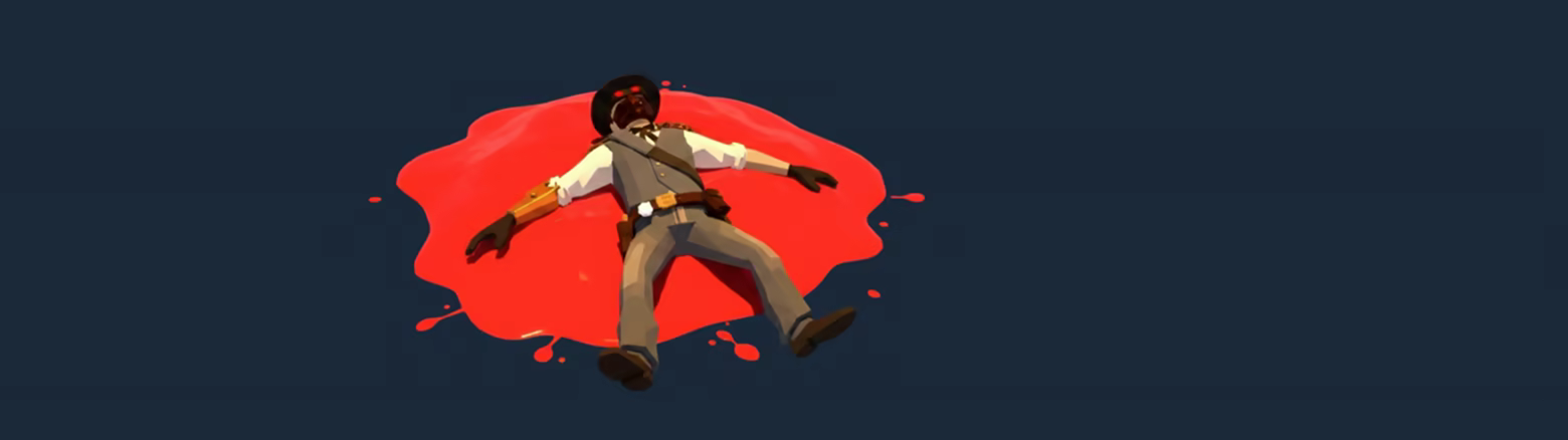 "No Death in Wild West" features stylized, combat violence with exaggerated comic book-style gore, including vivid blood splashes, ragdoll physics, and brutal melee combat.