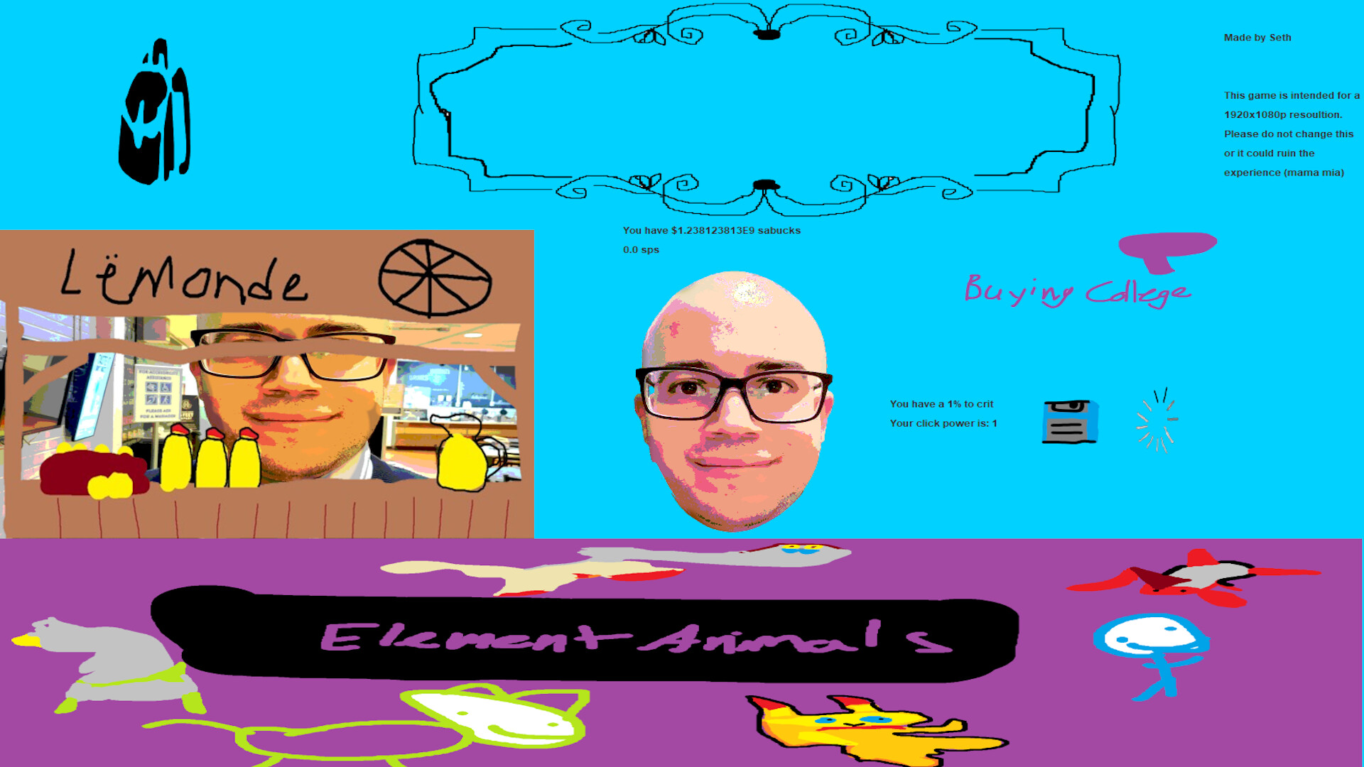 Saba Clicker is a fun clicker game. This game features multiple shops, upgrades, a bank system, and more. REMEMBER, only money put into bank is saved. While playing Saba Clicker, remember to enjoy the art and style.