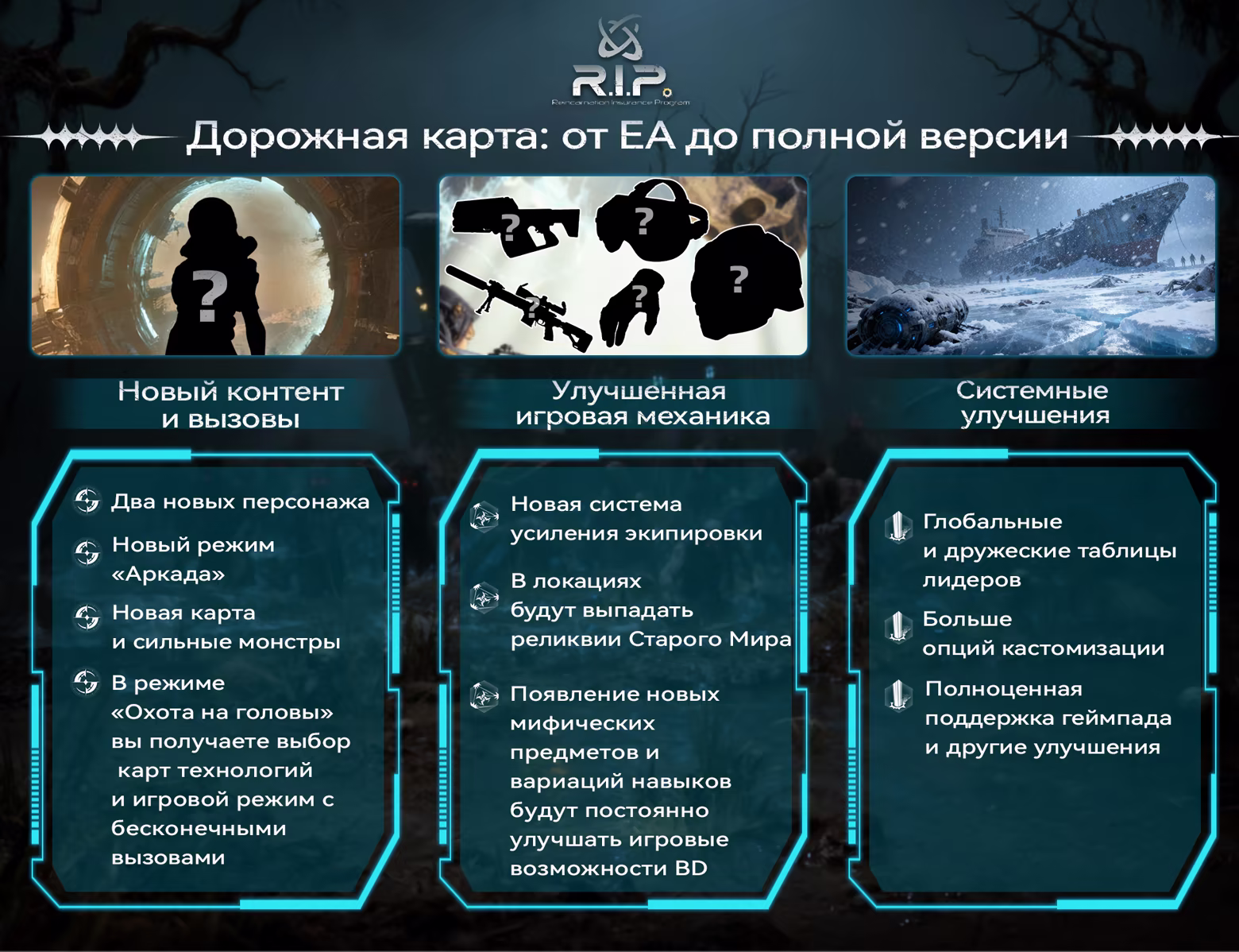 Пусть вас не расстраивают неудачи, ведь очки вклада все равно сохранятся. Их можно использовать для улучшения показателей героя и открытия новых способностей в дереве талантов. Адаптируйтесь! В этом бесконечном цикле вы с каждым разом будете становиться только сильнее. R.I.P. ждет докладов о ваших свершениях.