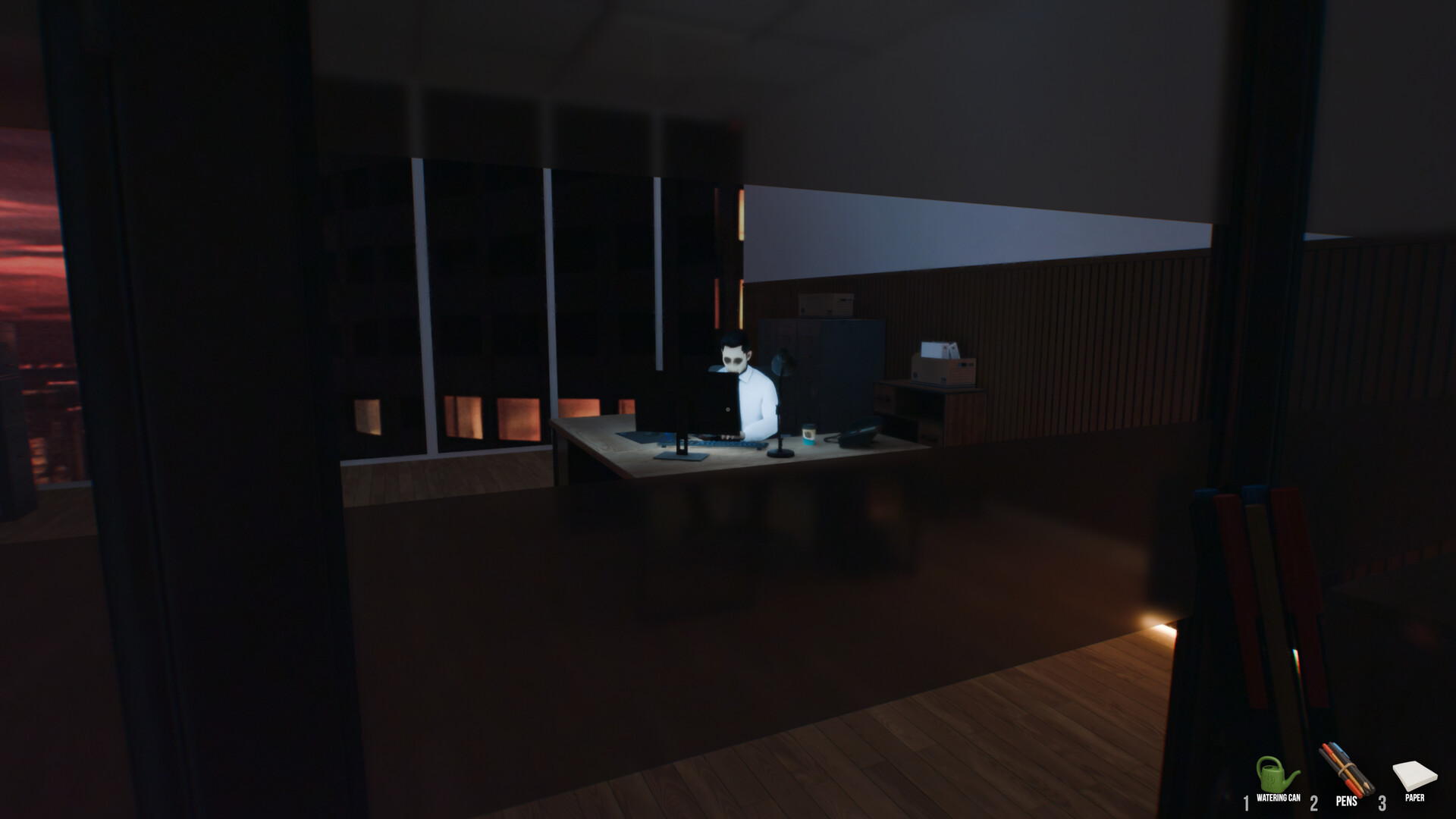 Blueman is an office-worker simulator with horror elements.
