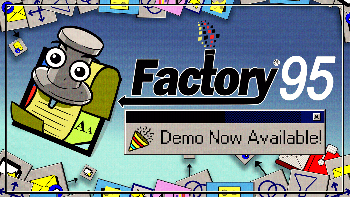 Factory 95 เป็นเกมอัตโนมัติสไตล์เรโทรที่ได้แรงบันดาลใจจาก Windows เกี่ยวกับการสร้างโรงงานผลิตสไลด์นำเสนอ... ในสไลด์นำเสนอ! จัดการพื้นที่ของคุณ สร้างสไลด์ที่ซับซ้อนมากขึ้น และกังวลเรื่อง Y2K ในเกมสร้างโรงงานแบบมินิมอลนี้