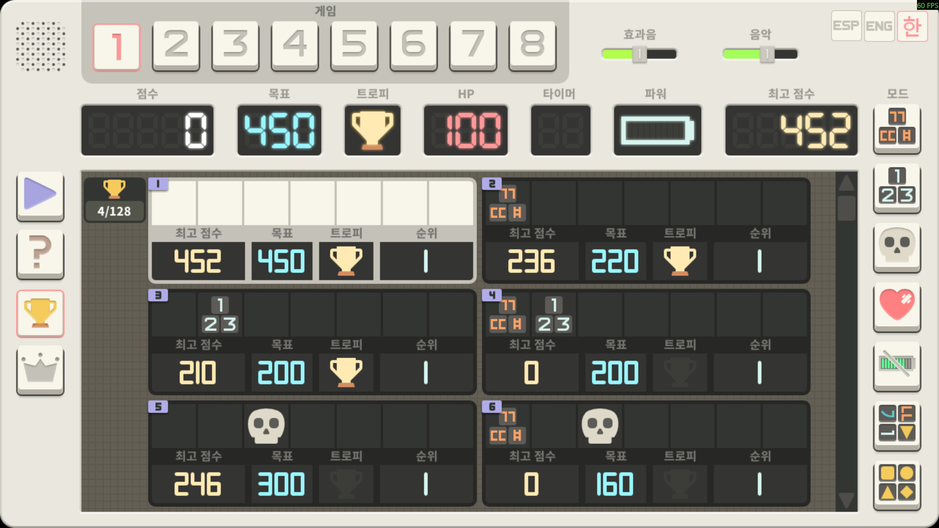 1 HP 모드 – 한 번의 실수로 게임 오버.