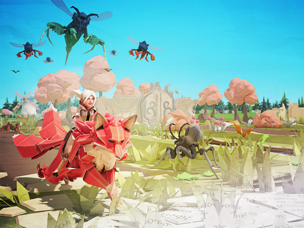 Epistory immerses you in an atmospheric action/adventure game where you play a girl riding a giant fox who fights an insectile corruption from an origami world. As you progress and explore this world, the story literally unfolds and the mysteries of the magic power of the words are revealed.