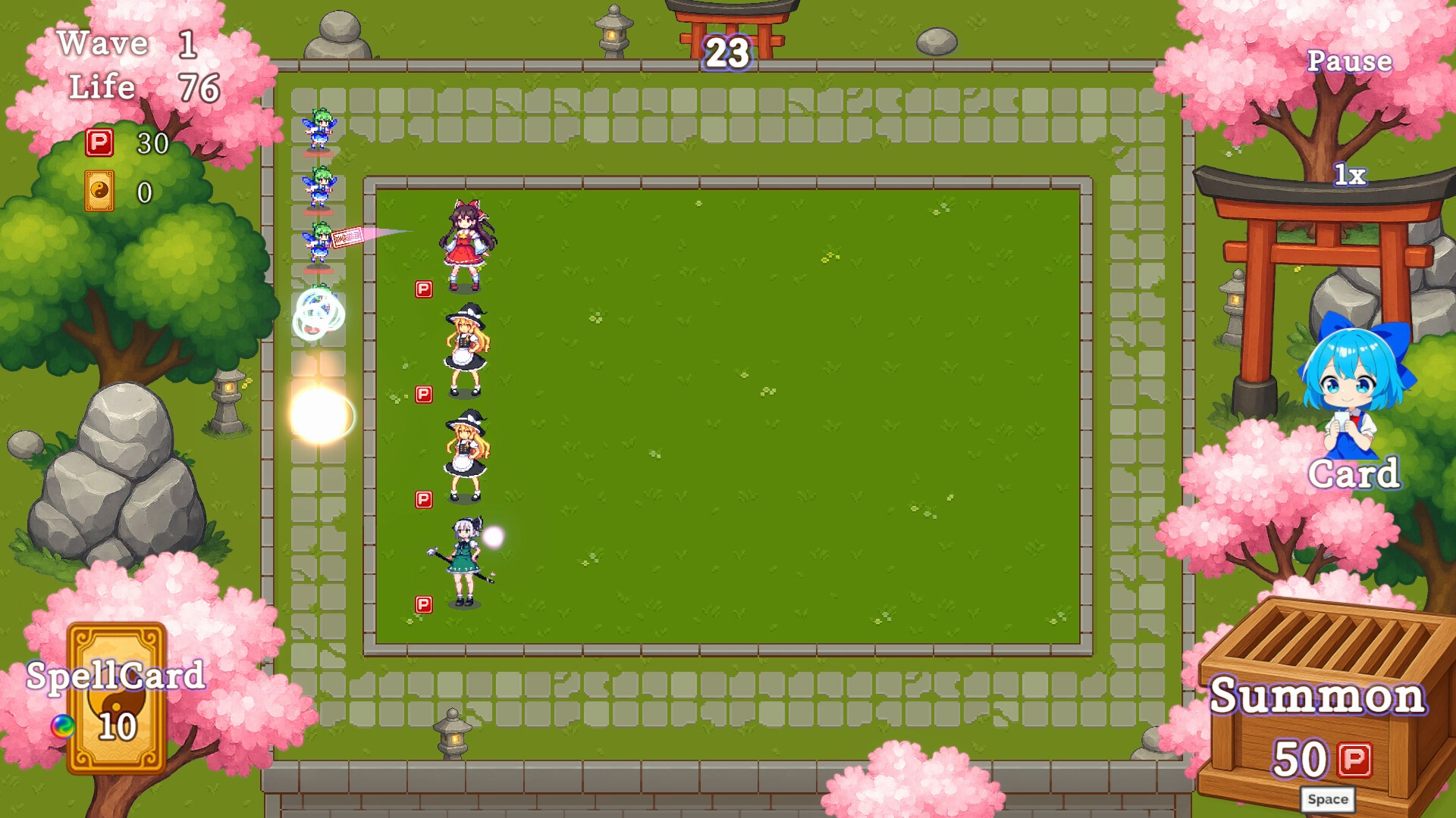A fan-made Touhou Project tower defense! Summon towers, merge them, collect cards to enhance them, and fend off waves of enemies!