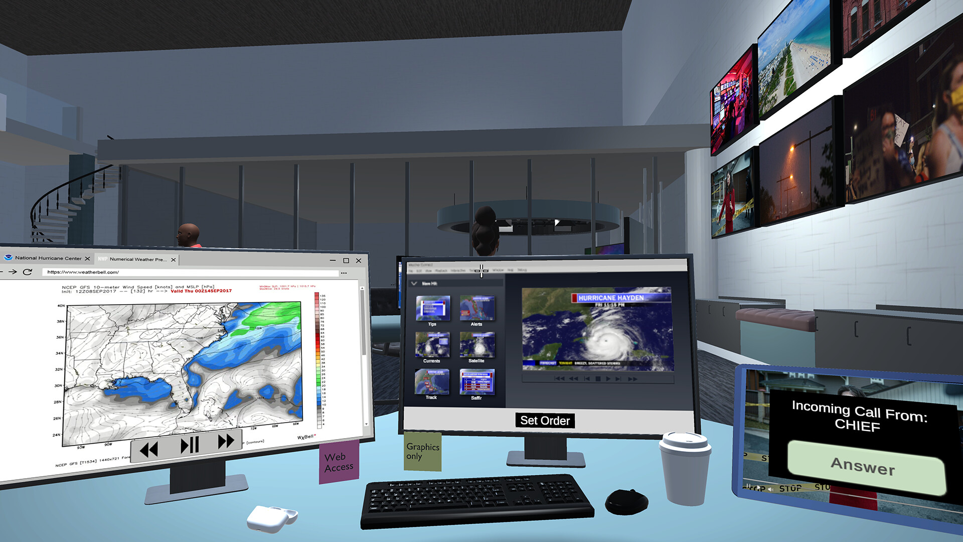 Hurricane Heroes is a 3-act interactive narrative experience that places players in the shoes of three critical roles as a storm approaches and impacts the coast of Florida.