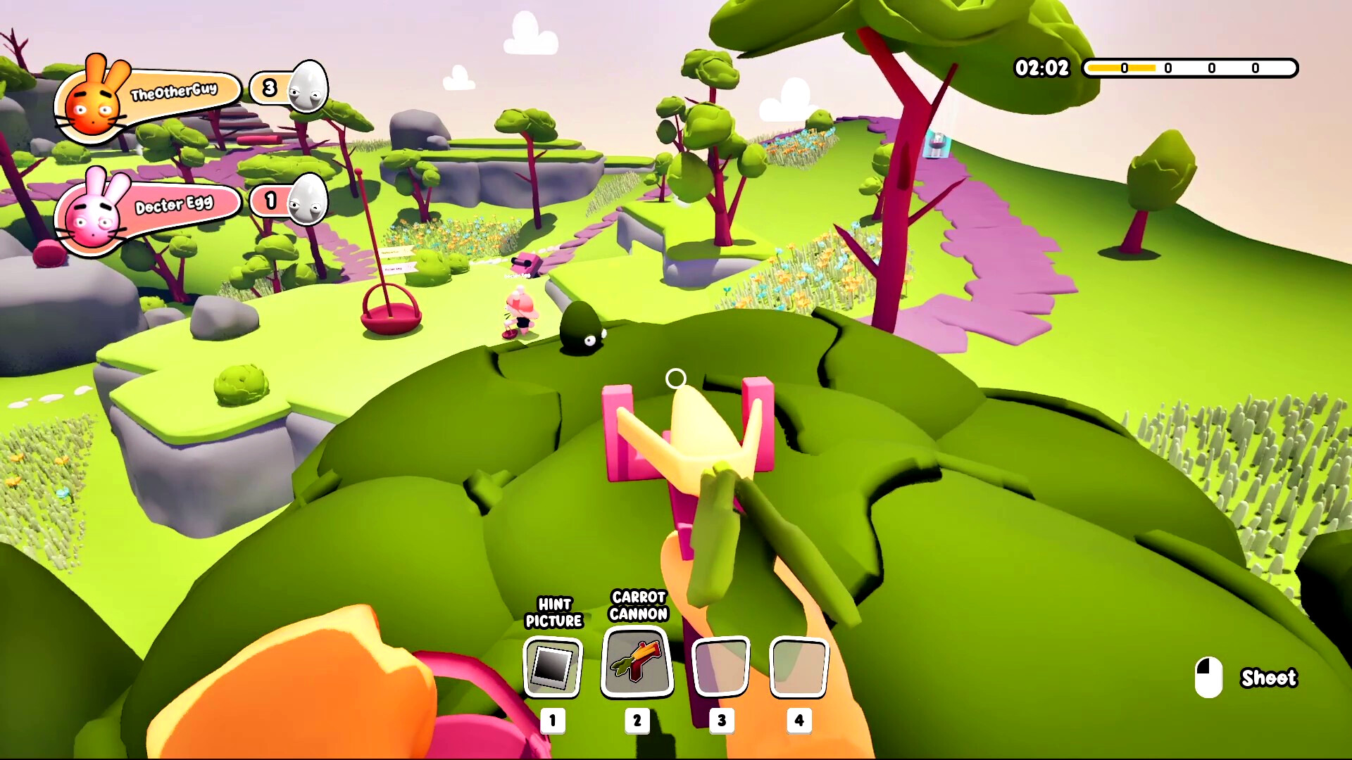 • 🥕 Carrot Gun – knock eggs out of your rivals’ hands