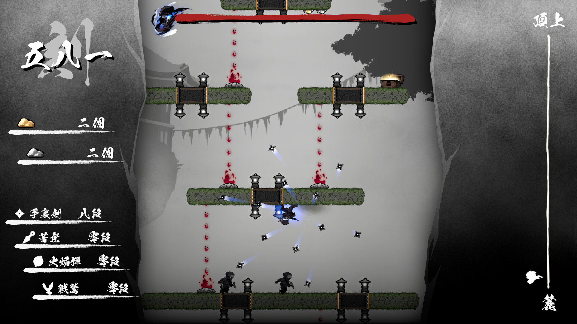 In the warring states period, the ninja Rasen trades his mortal life for a cursed existence as a demon slayer. Using simple one-stick, one-button controls, ascend the demon castle, and bolster your weapons as you grow stronger, death after death. Advance along a path adorned with blood and souls.