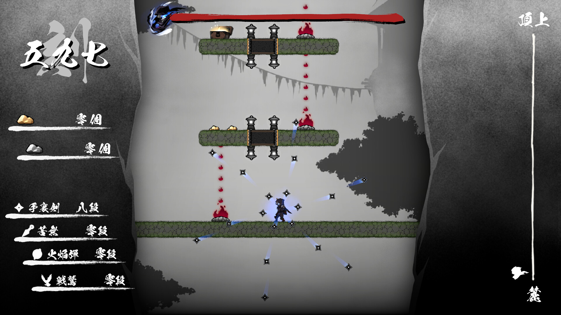 In the warring states period, the ninja Rasen trades his mortal life for a cursed existence as a demon slayer. Using simple one-stick, one-button controls, ascend the demon castle, and bolster your weapons as you grow stronger, death after death. Advance along a path adorned with blood and souls.