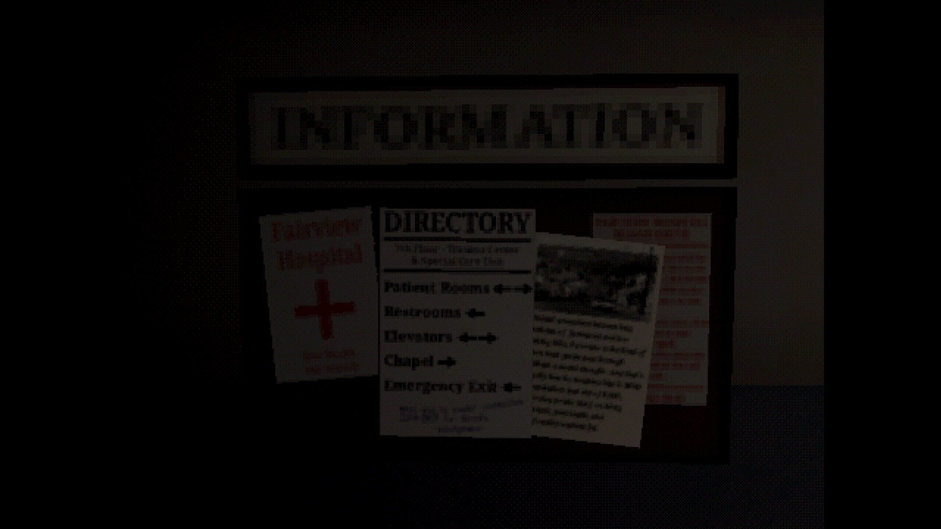 Вы оказываетесь в странной больничной палате: гудят люминесцентные лампы, радиоприемники шипят помехами, а коридоры кажутся чересчур длинными. Выход виден с самого начала, но что-то здесь не так.