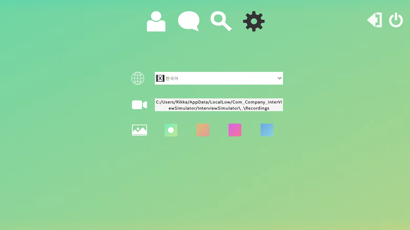 마지막으로 설정 화면에서는 언어 설정, 영상 저장 위치, 배경 설정을 변경할 수 있습니다。
