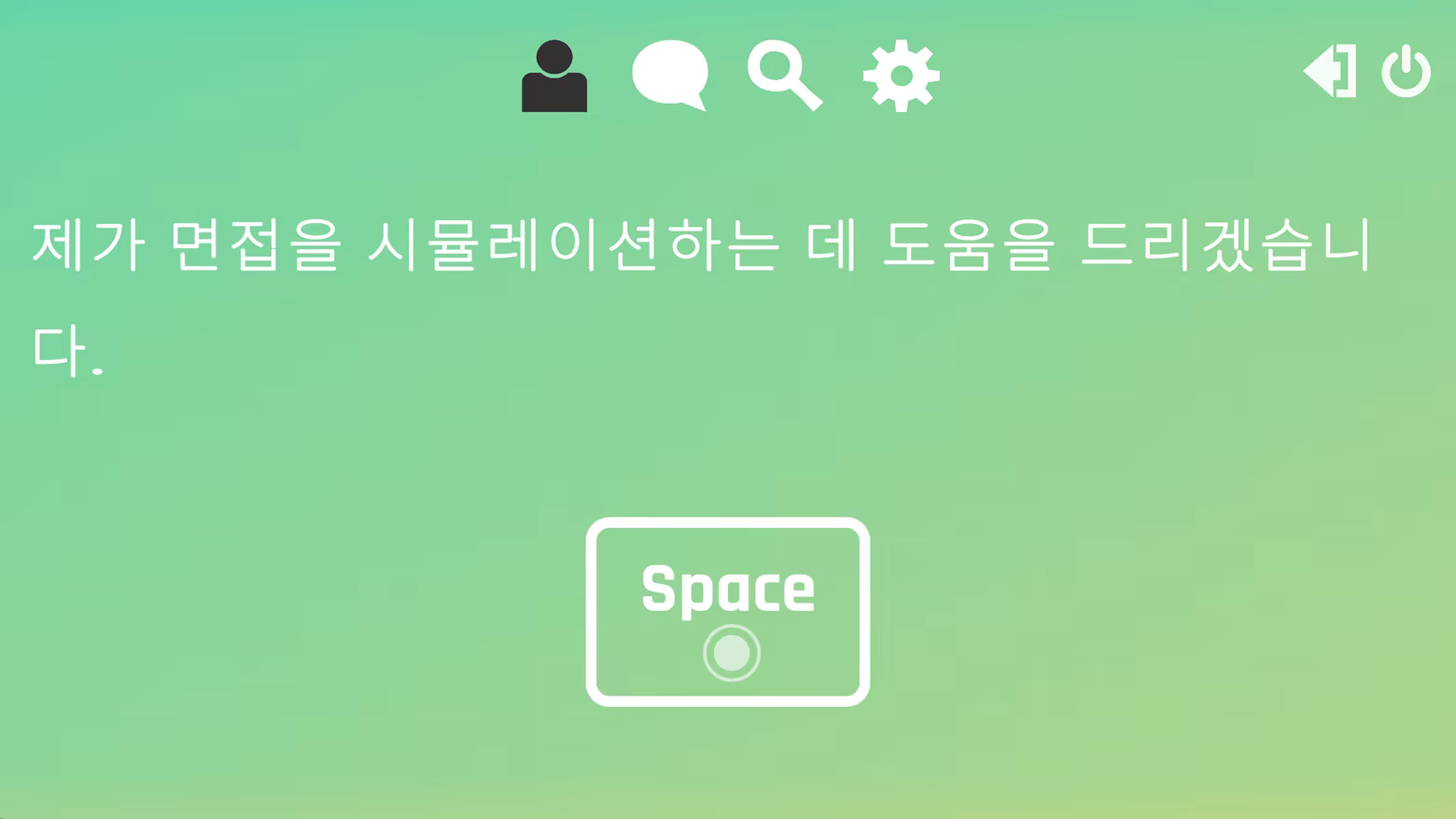 면접 탭에서는 키보드의 스페이스바를 눌러 다음 대화로 진행할 수 있습니다.