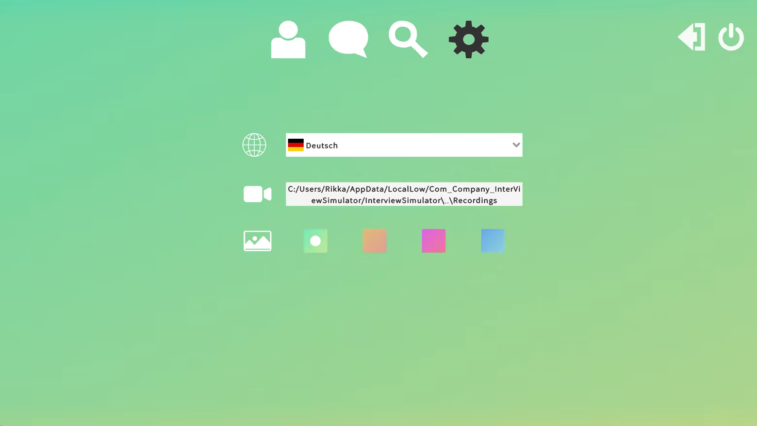 In den Einstellungen können Sie die Sprache, den Speicherort der Videos sowie die Hintergrundoptionen anpassen.