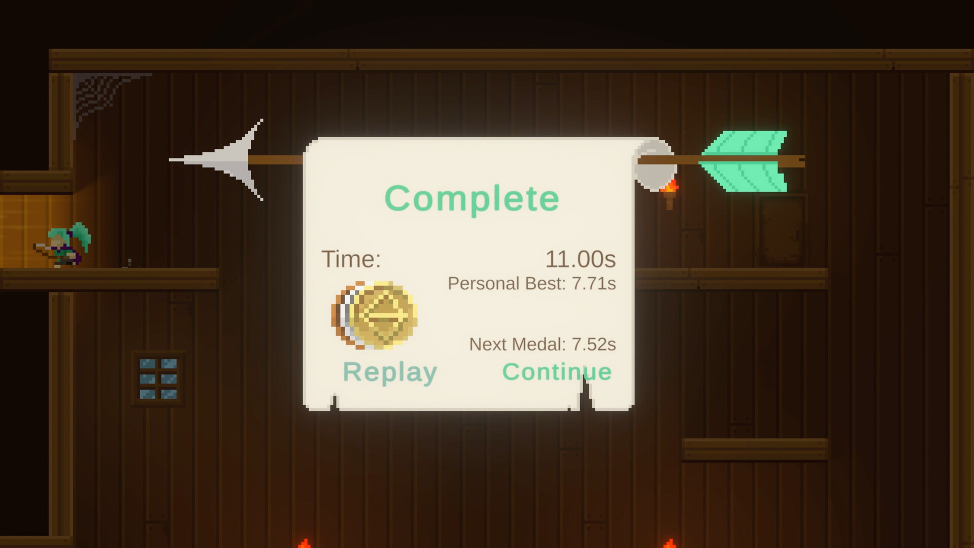 Get rewarded for traversing levels quickly! Collect Bronze/Silver/Gold/Developer Archer Medals for completing levels fast enough, unlocking bonus levels, cosmetics, and more! Just don't be foolish enough to actually try to collect Developer Archer Medals - which are only obtained by beating my personal best time... and good luck with that.
