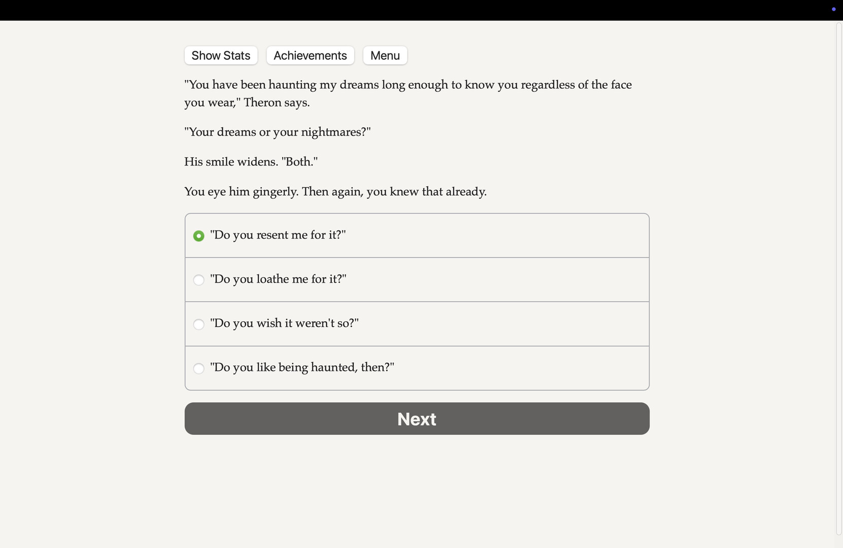 Or you could leave the gods and their games behind. There is one mortal who does not fear you, despite the nightmares that you have sent him: Theron, lord of Leukas. He has dark curls, sad eyes, a bittersweet smile; the clever rugged hands of an artisan and the easy power of a true ruler. Can you find true love under the mortal sun?