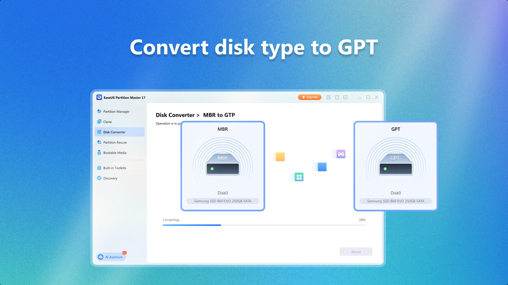 • Convert MBR to GPT: A crucial step for using drives larger than 2TB and for modern UEFI systems, all without deleting data.