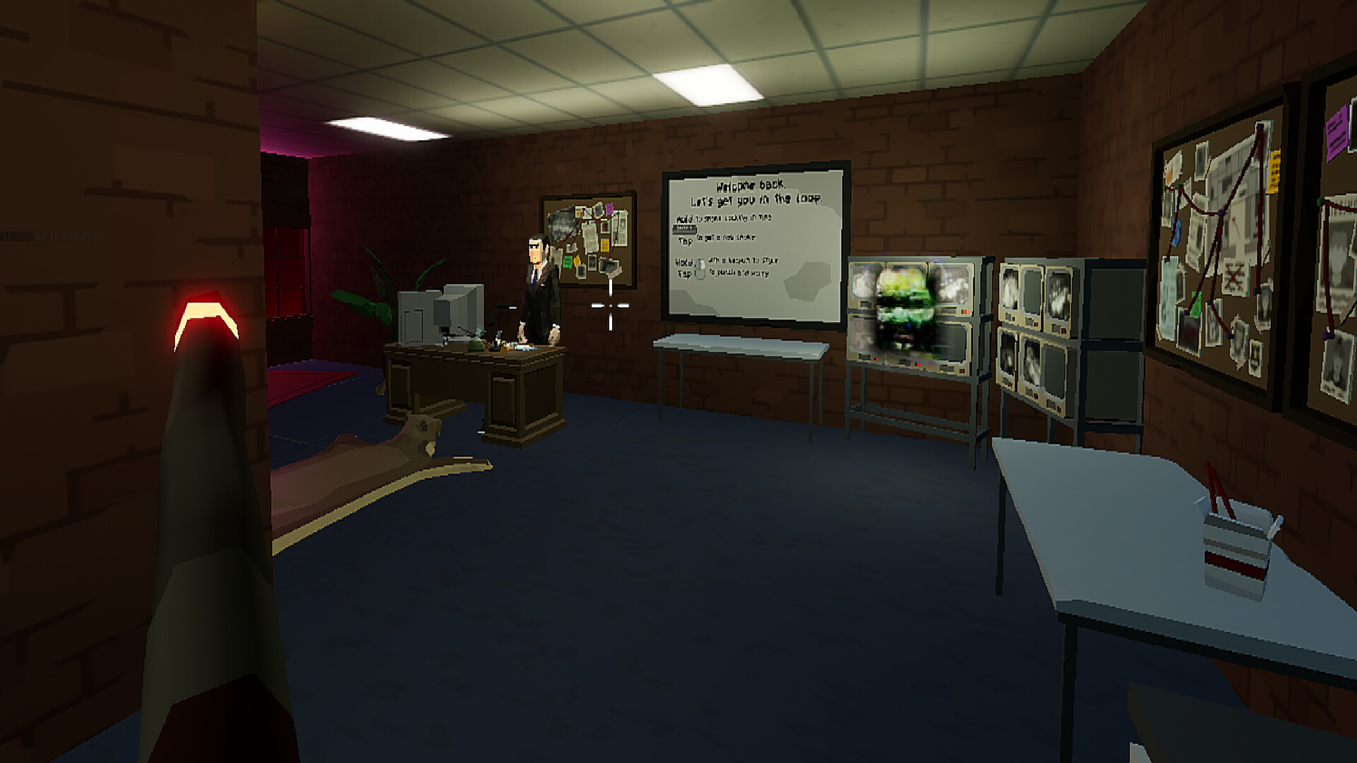 Stuck within the Event Horizon, denizens of downtown as well as The Agency will provide you with randomized tools that you can unlock in subsequent runs. Gun attachments and other items will unlock as you gain cash and hack computers in minigames and improvisational choices. Face bosses and enemy variation that unlock as you progress. Water cooler humor, old school CRT's, that kinda thing.