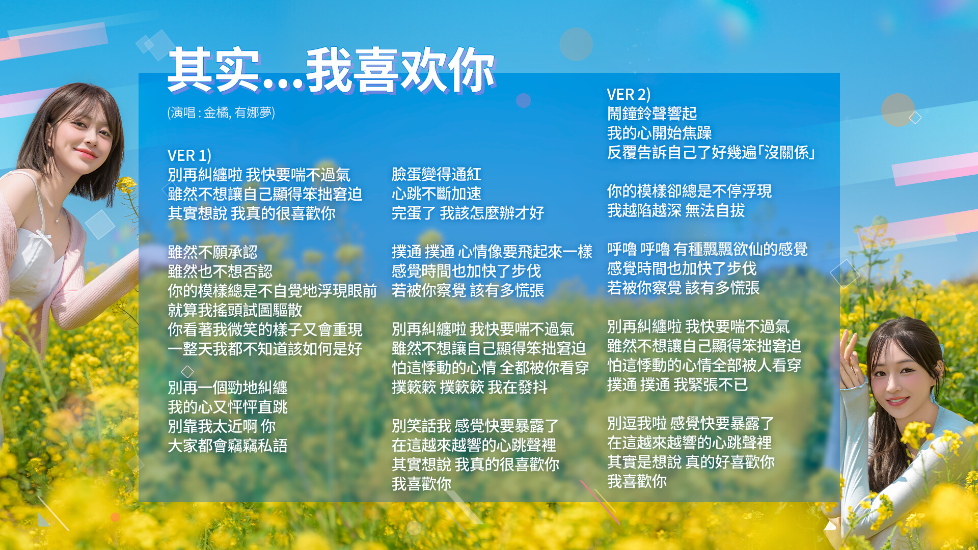 《阿西, 美女室友竟然...?2》的主題曲,由演員有娜夢 & 金橘親自獻唱