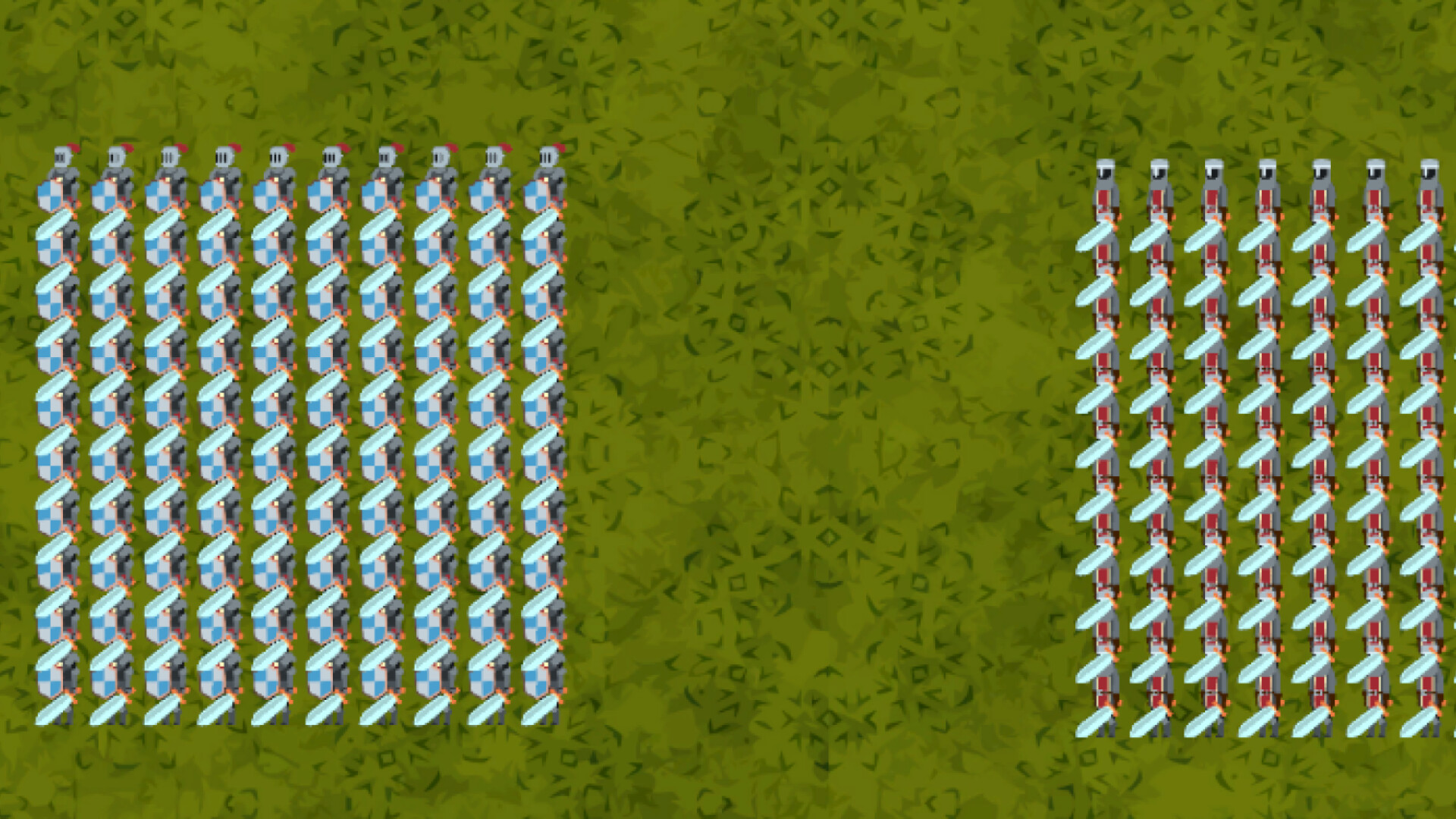 This game is a battle simulator. You can freely place hundreds of characters and have them fight automatically. There are three types of characters in total, and you can create up to four teams. You can freely set attack mode and defense mode.