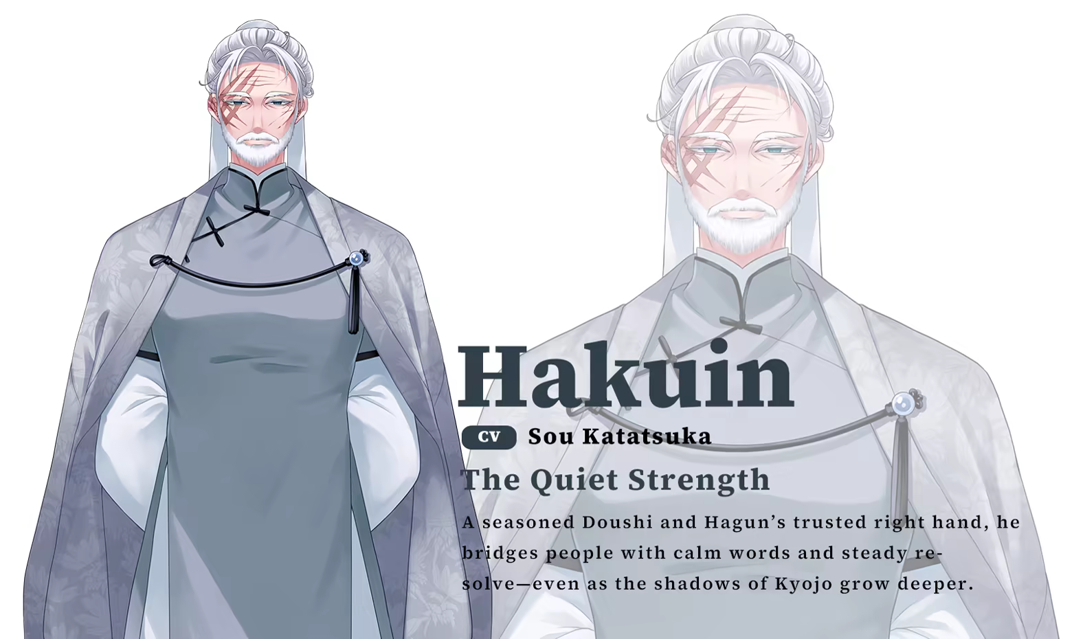 A seasoned Doushi and Hagun’s trusted right hand, he bridges people with calm words and steady resolve—even as the shadows of Kyojo grow deeper.