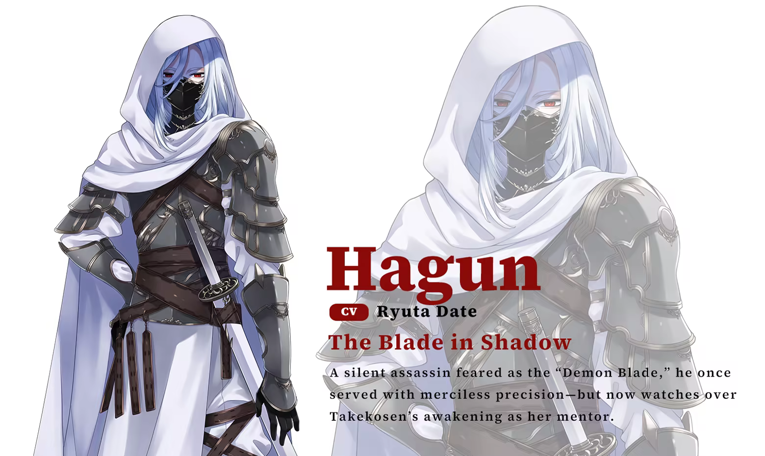 A silent assassin feared as the “Demon Blade,” he once served with merciless precision—but now watches over Takekosen’s awakening as her mentor.