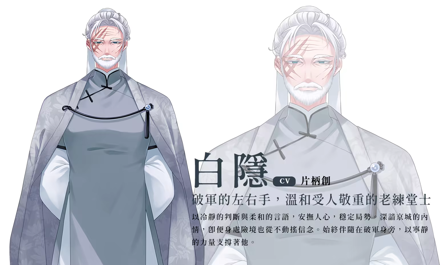 • 預估遊玩時間:約90分鐘。雖為短篇,但以緊湊扎實的結構,呈現「東方古風幻想 × 政治劇 × 命運試煉」的獨特視覺小說體驗。