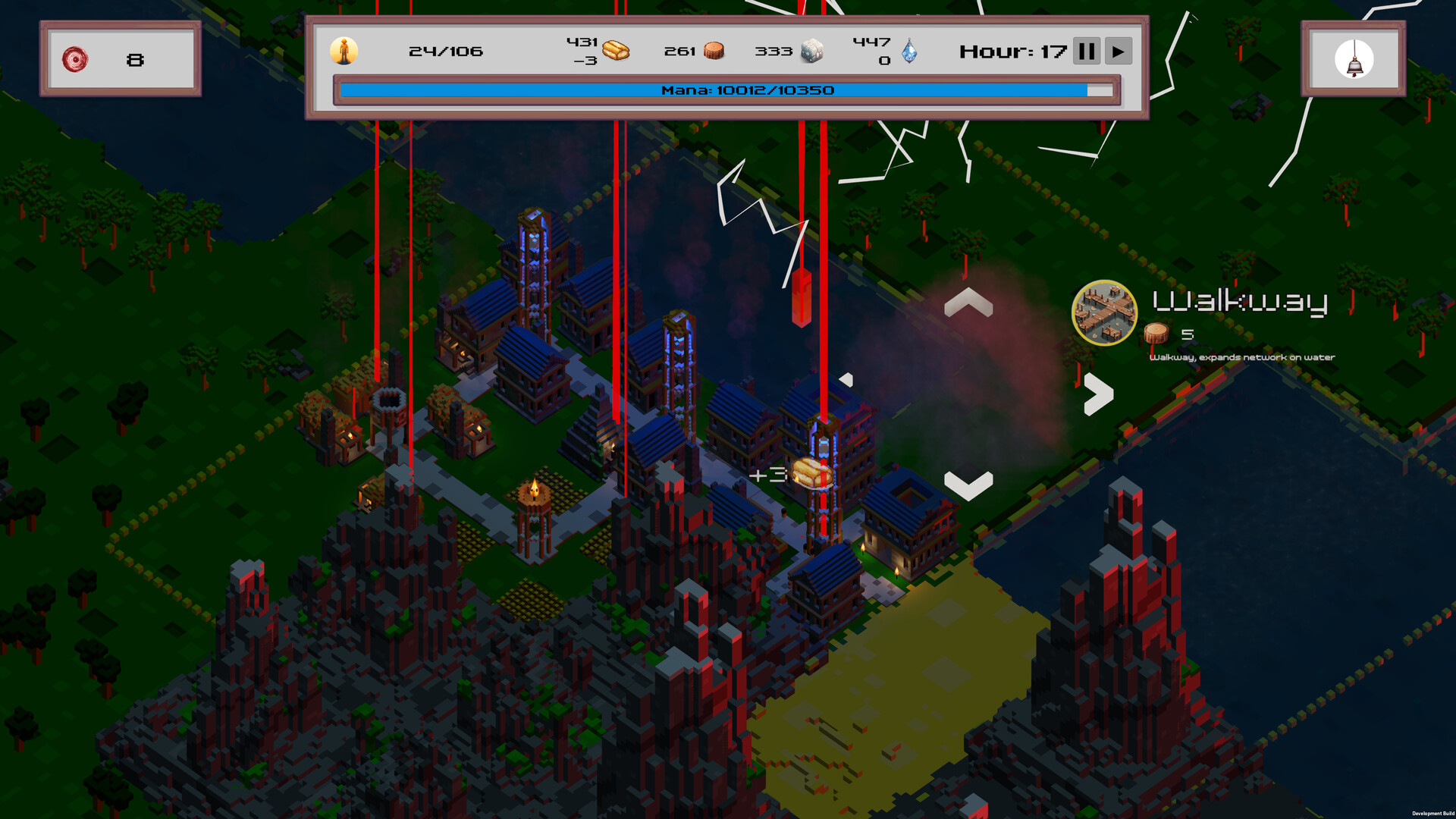 Reshape terrain, summon resources, smite enemies—watch your population disappear with every spell. Meanwhile, corruption grows with your settlement and divine actions, spreading tile-for-tile.