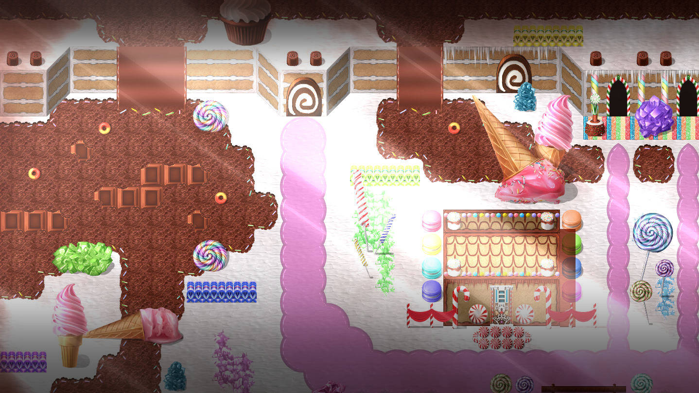 Treat your sweet tooth to a delicious wonderland with the KR World of Candy Tileset! Kokoro Reflections has cooked up a sweet MV-sized tileset to add a land of candy to your fantastical world. Give your elves gingerbread houses to live in, your rivers a yummy chocolate twist, your roads a gumdrop button fence, and more with this pack!