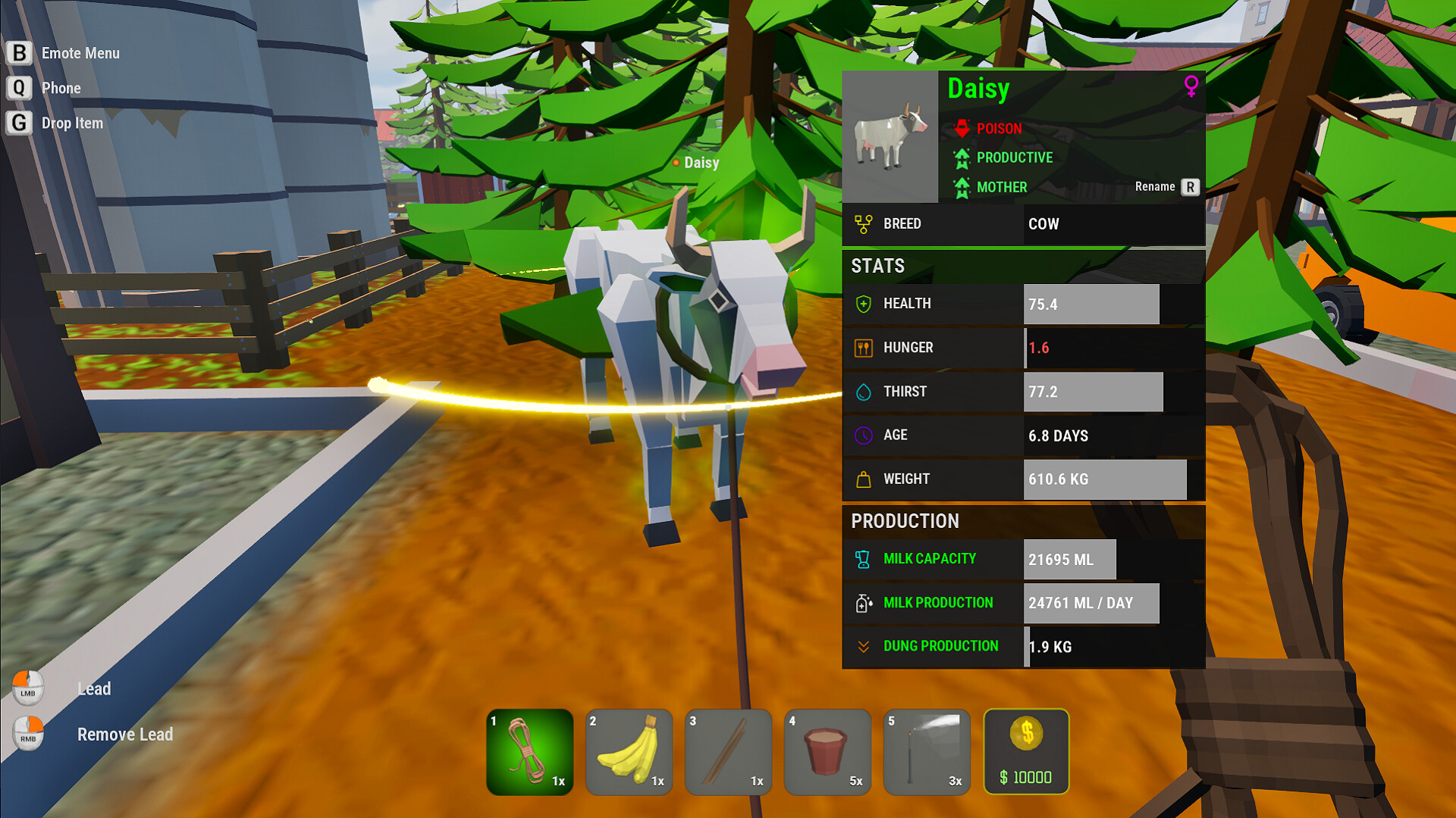 Manage your ranch with friends in multiplayer or alone! Raise and feed animals to produce resources, grow your farm, and keep everything organized. Buy supplies from city markets, deliver orders to earn money, and expand with more animals and upgrades as you grow your ranch.