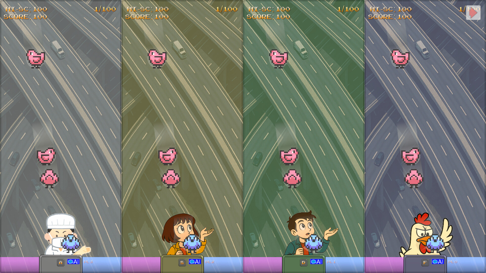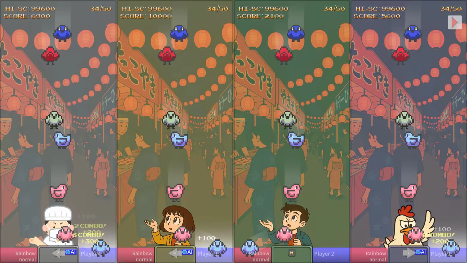 It’s a game where you sort falling red and blue chicks to the left or right with a single button. Sometimes the colors or order may switch unexpectedly. Some stages are extremely difficult, but there’s an AI assist feature. Accessibility options allow you to adjust contrast and color tones.