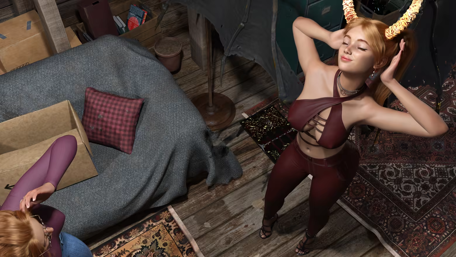 The game is still in development and the demo version contains only the prologue to the main plot, this is about 1.5 hours of content, ~1000 renders and ~45 animations. In this part, we will dive into the plot and get to know the main characters in this story. And of course, we will try some sex scenes! This content should be enough to understand whether you are interested in the full version of the game or not.