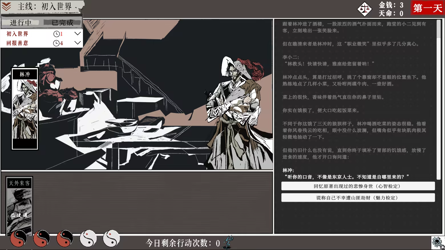 Players can explore a world composed of an over-world map and regional maps. By passing attribute checks, they can trigger interactions, take on side quests, and encounter random events. Exploring key areas will advance the main plot and unlock different story developments.