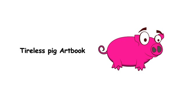 Tireless pig with game characters and backgrounds. Also contains information about the artist who created this artbook.