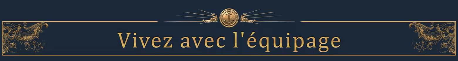 Prenez votre place parmi l'équipage ! Officiers, maîtres de bords, soldats, matelots Interagissez avec la foule des marins, découvrez les hiérarchies et explorez les différents rôles qui s’offrent à vous !
