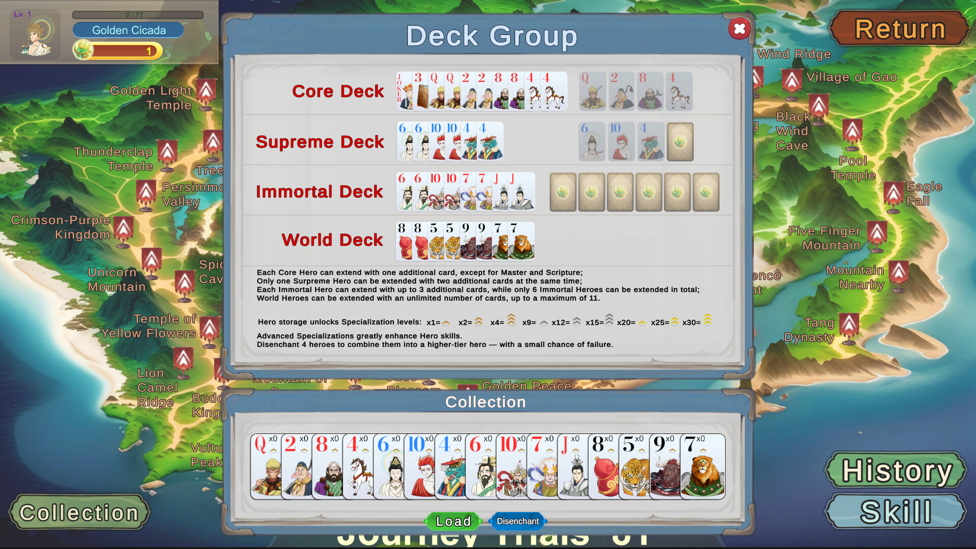In the later part of the journey, players unlock deck customization. Expanding and refining the deck improves the probability of forming preferred combinations, allowing more strategic victories.