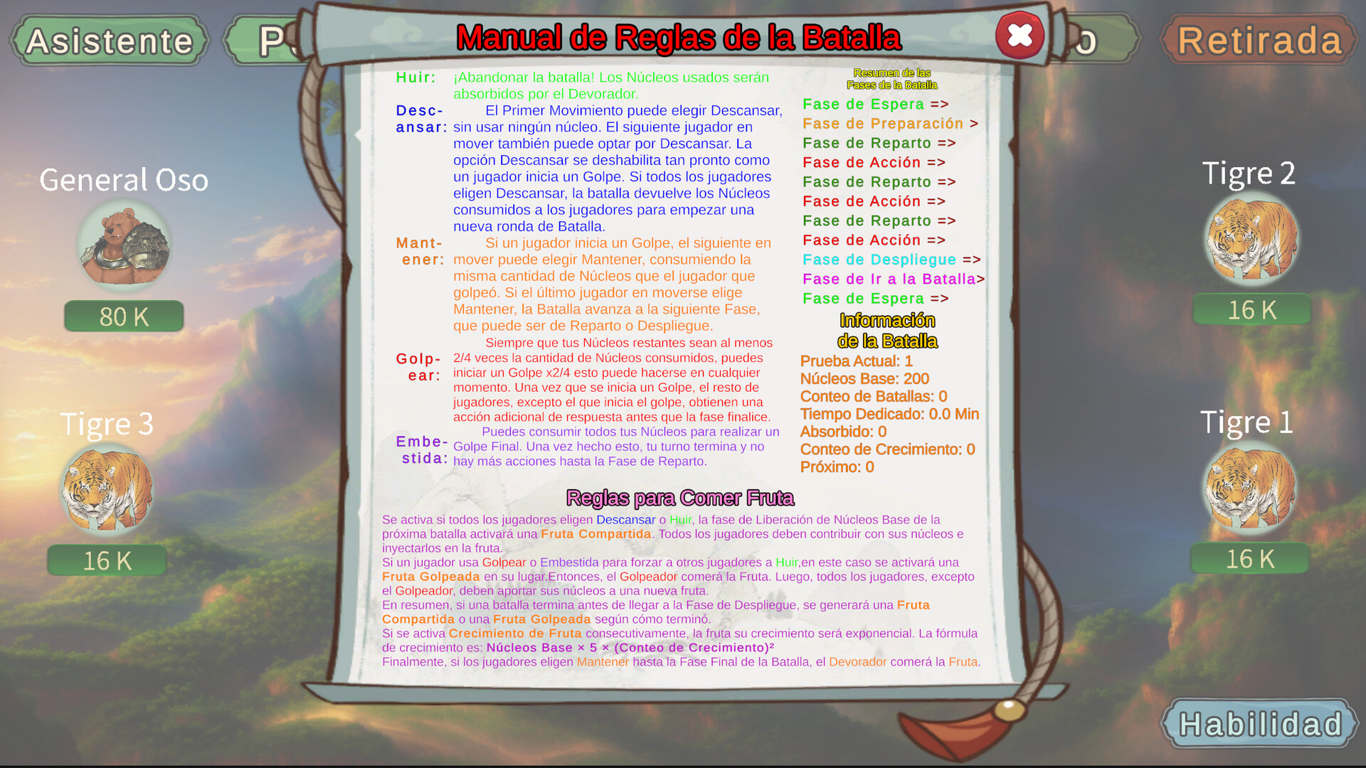 Cada carta tiene su propia habilidad única, que se desbloquea gradualmente a medida que avanzas en las etapas, con cargas de uso obtenidas a través de las batallas.