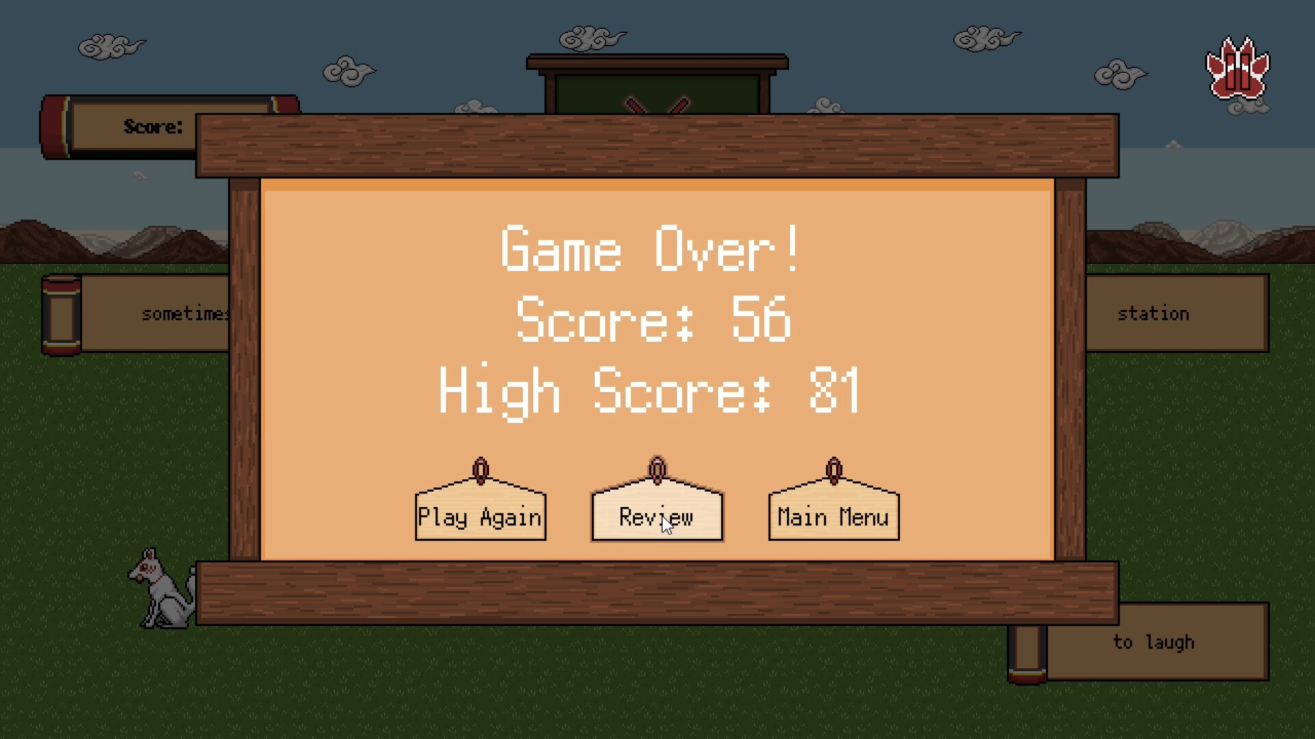 Every round tests your knowledge of Japanese words as you dash to collect the correct scroll. The faster you grab scrolls, the higher your score climbs. But choose wrong, and you’ll lose a life. Accuracy and speed work together to drive your score higher, helping you track your personal best and see your progress over time.
