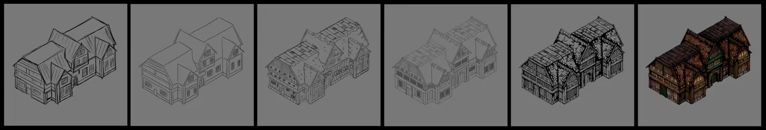 • production art, concepts, and sketches from the game's development, with 45+ items