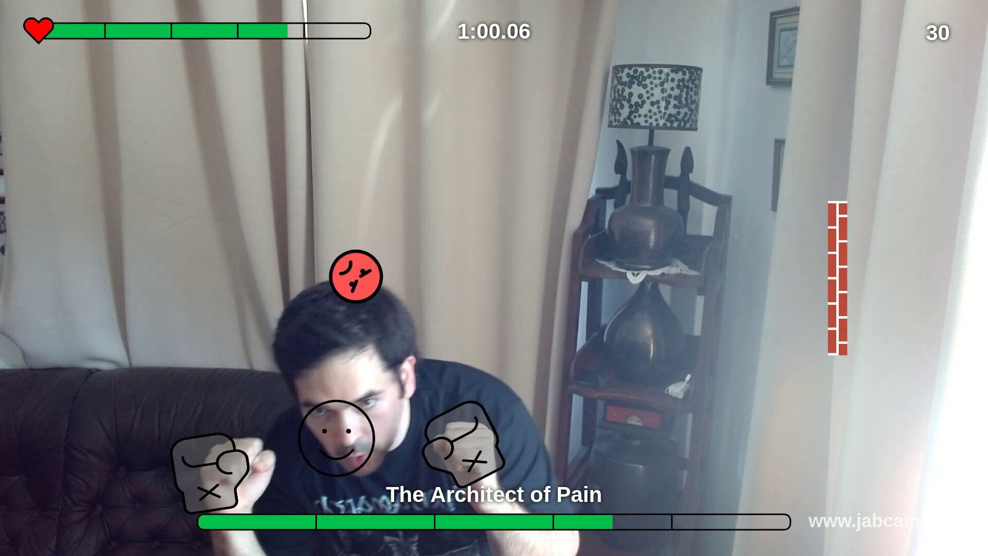 A punching and dodging game with a twist: you play with your body.