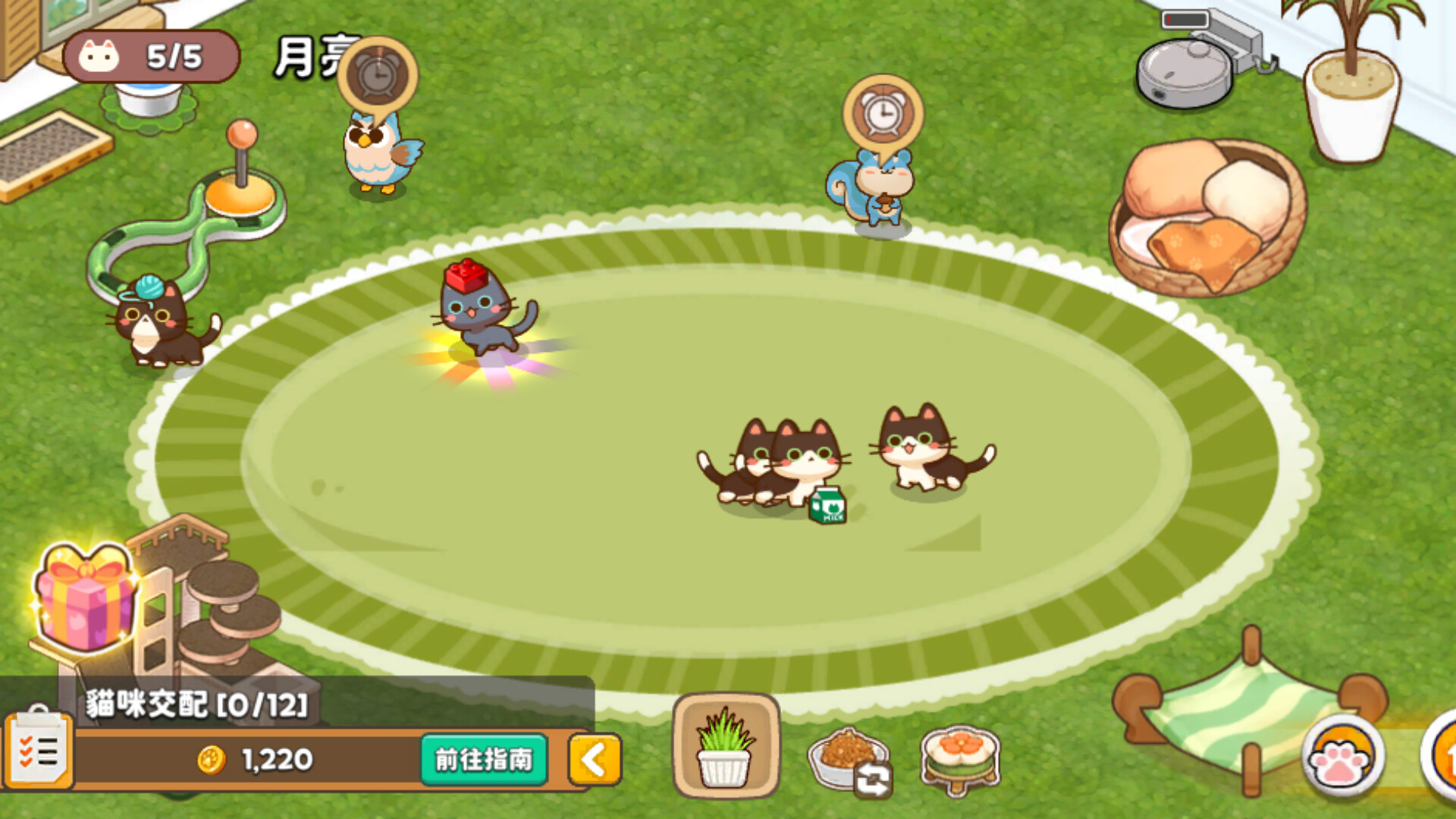 我們準備好了貓罐頭、小玩具、軟墊墊……