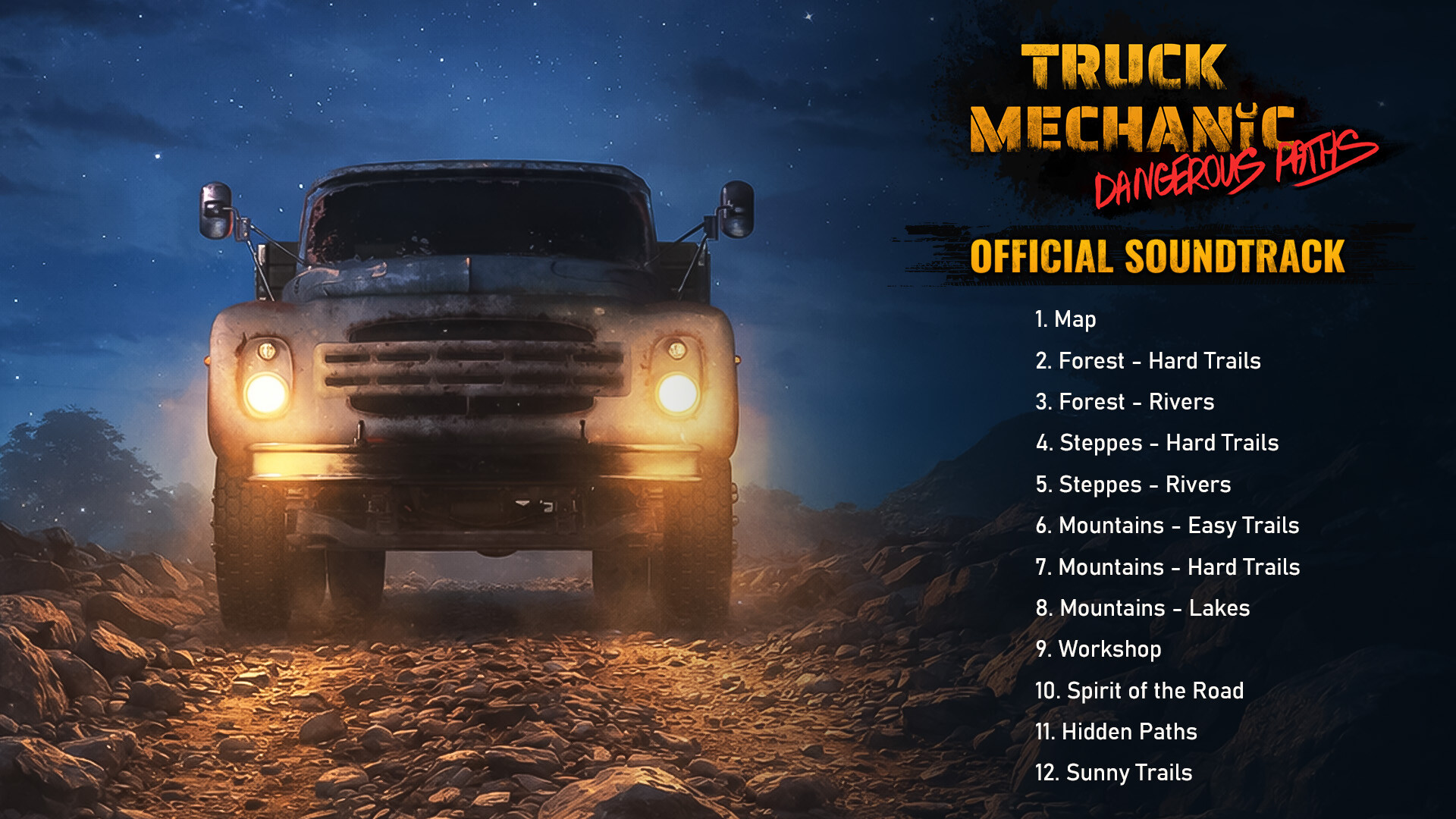 Either way, this soundtrack brings you all the atmosphere of the game — the long roads, rough trails, and moments of calm between the challenges — straight to your playlist. Listen to it wherever you want: on the road, in the garage, or while taking a well-deserved break.