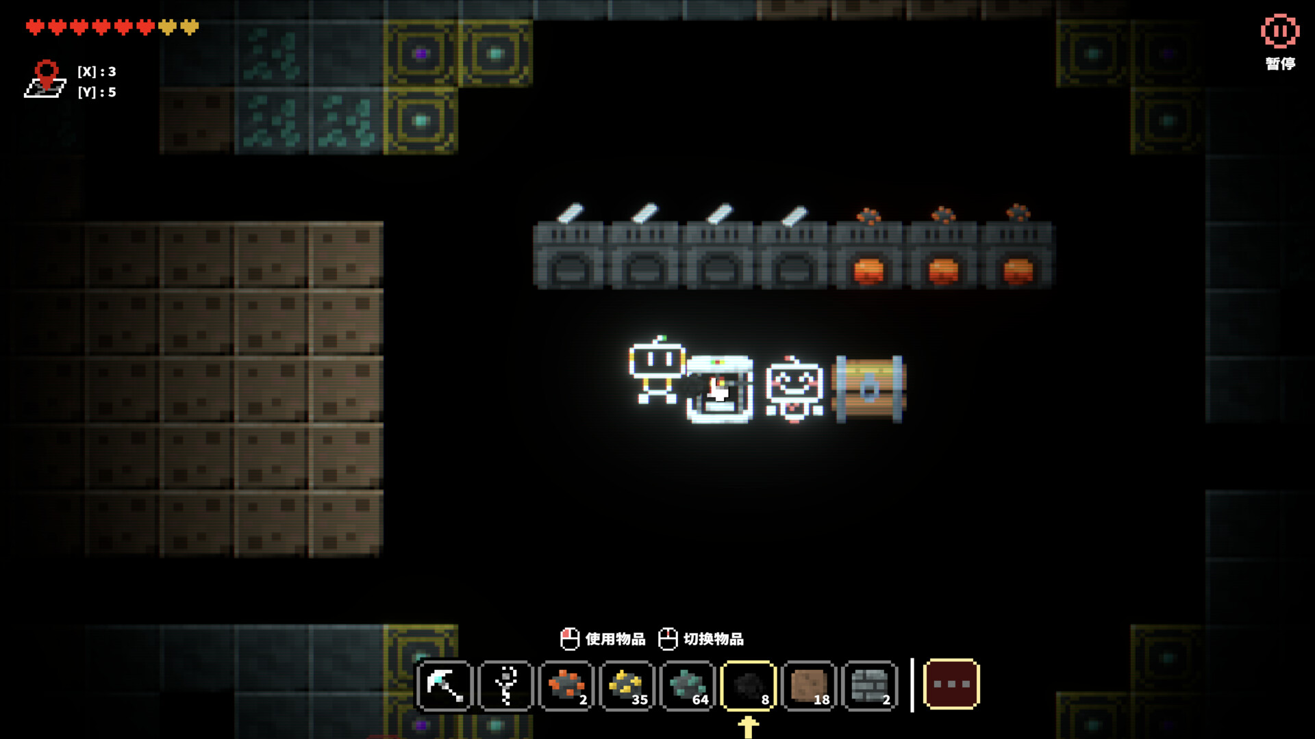 在一个程序化生成的 2D 像素沙盒世界中探索、挖掘和建造。收集矿物并熔炼,合成物品,升级标签。挑战怪物、发现遗迹,体验自由的冒险与创造之旅。