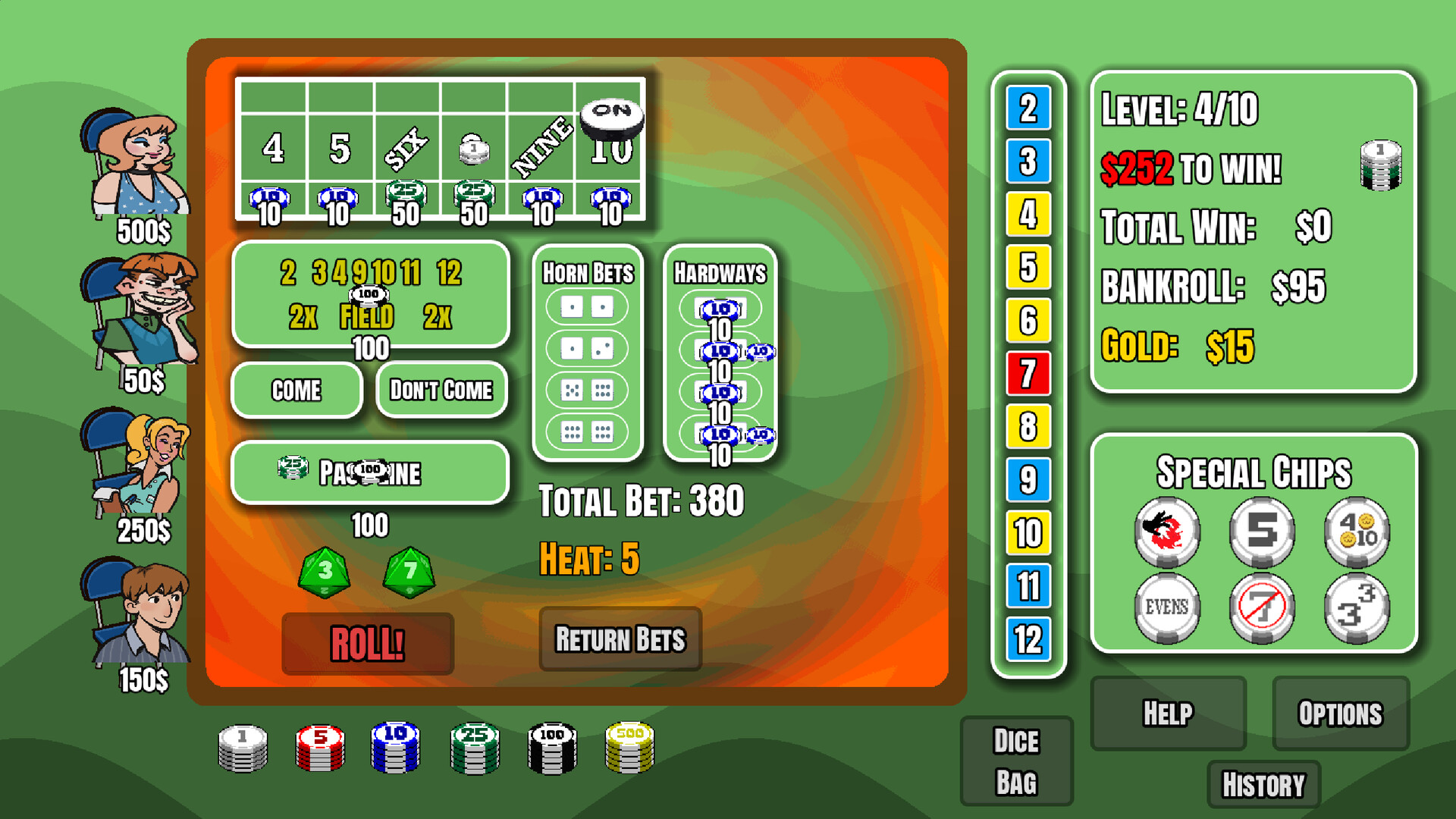 • 10 Special dice to push the odds in your favor