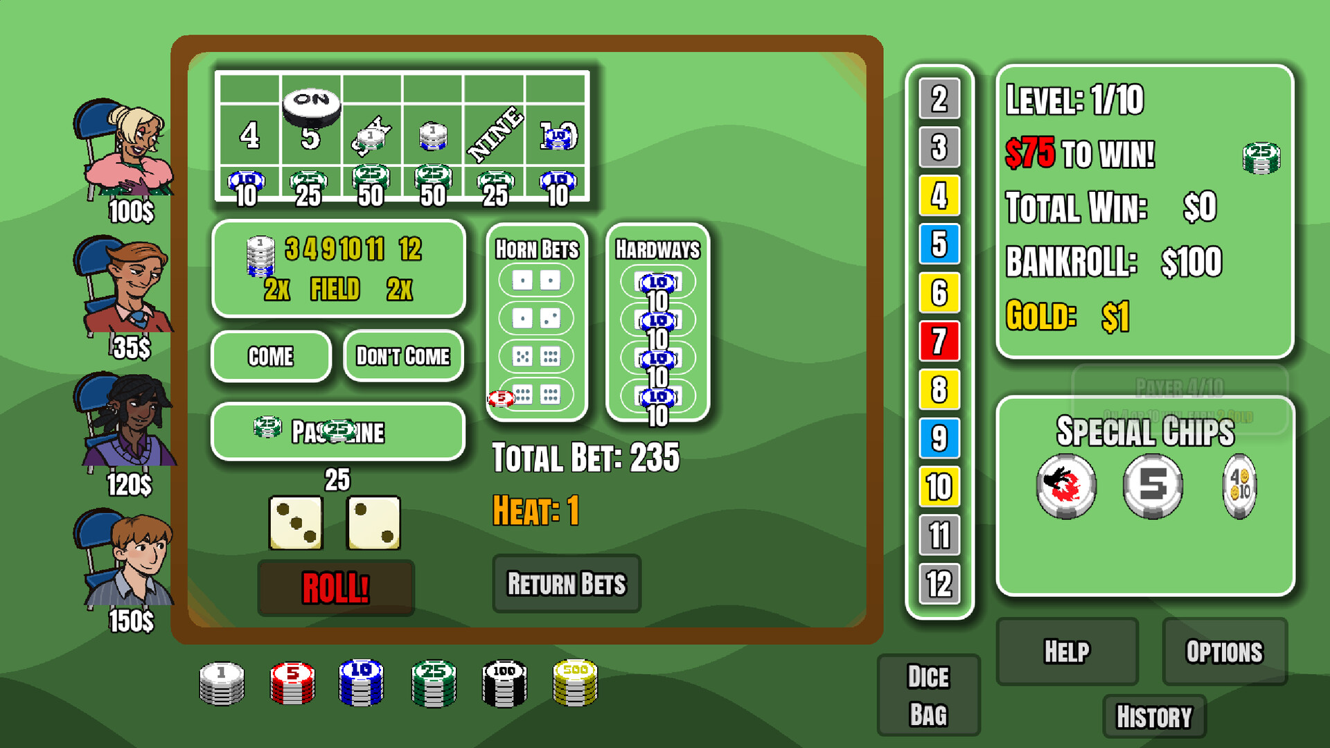 Can you outplay the house, build the ultimate dice-slinging strategy, and make it to the final level? Roll the dice and find out!