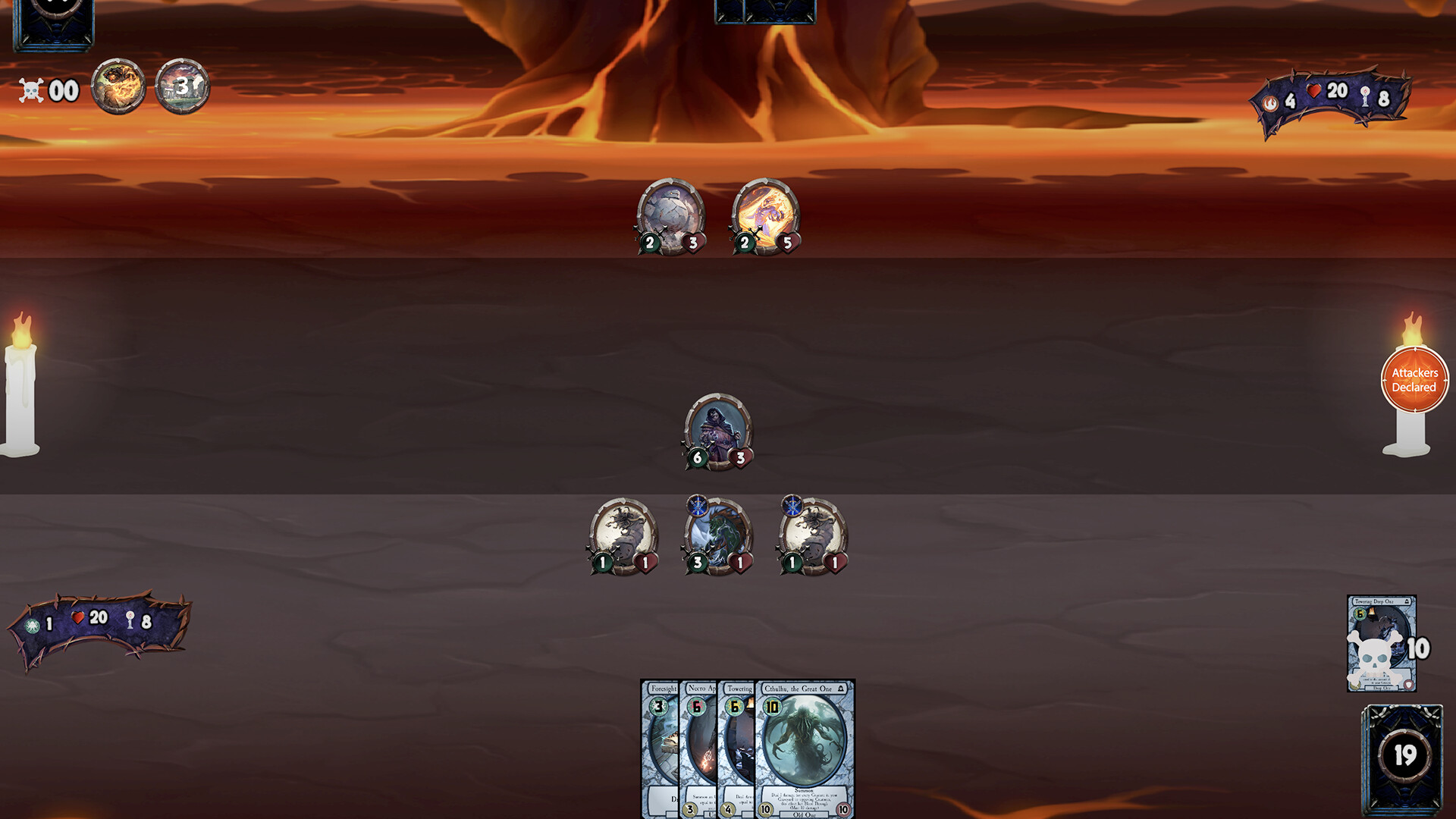 Nightmares is a combination of a classic collectible card game and a roguelike deck builder. Race against the clock to defeat your opponent before your sanity runs out. Win or lose, you'll get the opportunity to upgrade your deck. Can you craft the ultimate deck for an undefeated run?